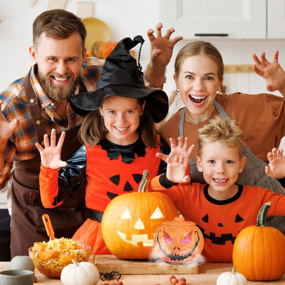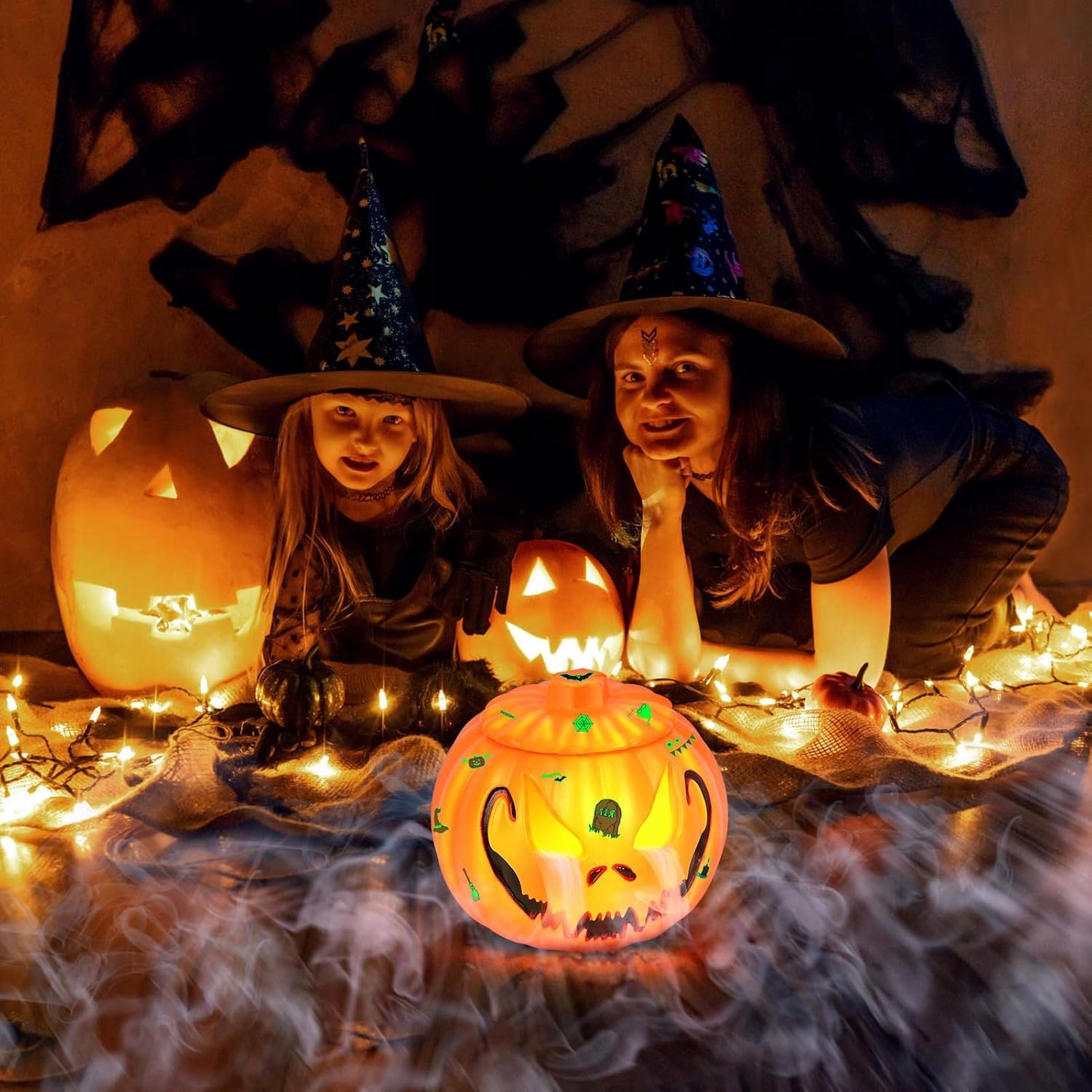 🎃 тыква для Хэллоуина с туманным аппаратом - алюминиевый распылитель с 12 изменяющимися светодиодными цветами, светодиоды меняются случайным образом. Четыре типа света: синий, желтый, красный и фиолетовый, ночи.