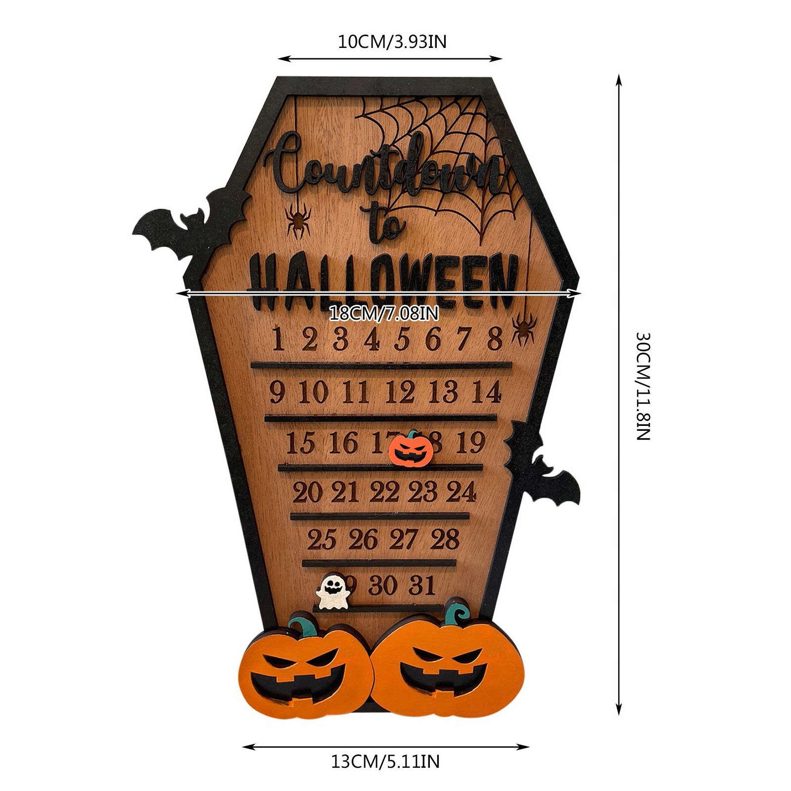1. [Страшный дизайн]: календарь обратного отсчета Хэллоуина состоит из 31 или 30 деревянных блоков различной формы, включая летучих мышей, тыквы, призраков и пауков, что создает леденящую душу атмосферу.
