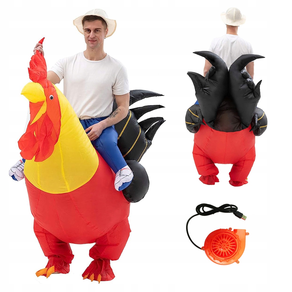 - Надувное тело в форме красного петуха было разработано для людей с 150 до 185 см. (Батареи не включены), и полная надушка будет проходить через 60 секунд. При достаточной мощности он может оставаться раздутым до семи часов, что дает много времени для игры.