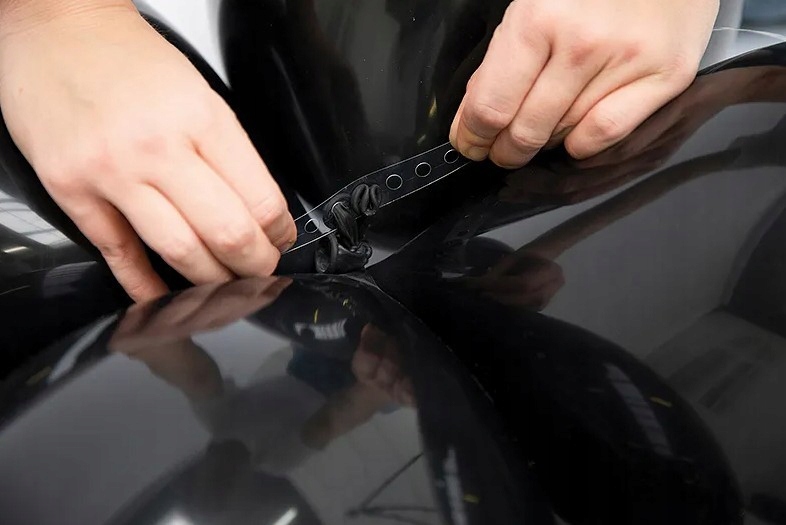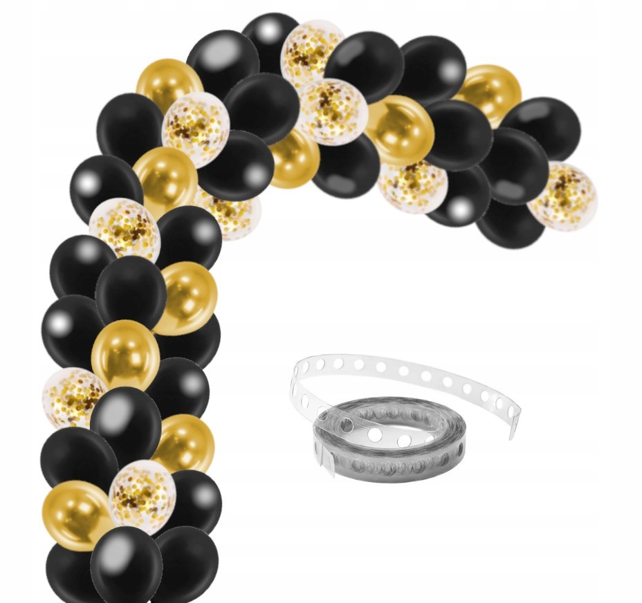Набор воздушных шаров со специальной лентой для создания гирлянды в черных и золотых цветах.