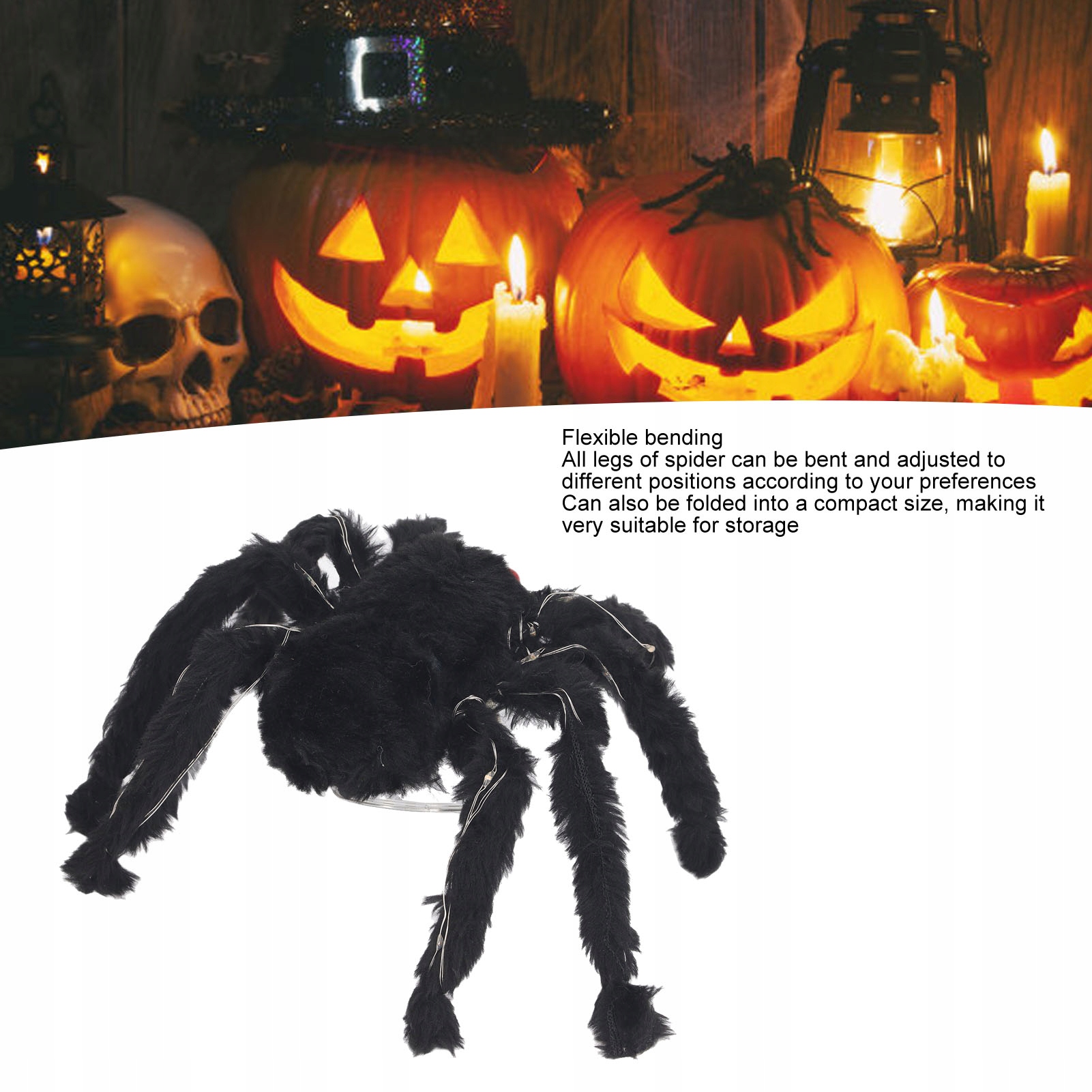 1. Гибкое изгиб: все ноги паука могут быть согнуты и установить в разных положениях в соответствии с вашими собственными предпочтениями. Его также можно сложить до небольшого размера, что делает его идеальным для хранения.