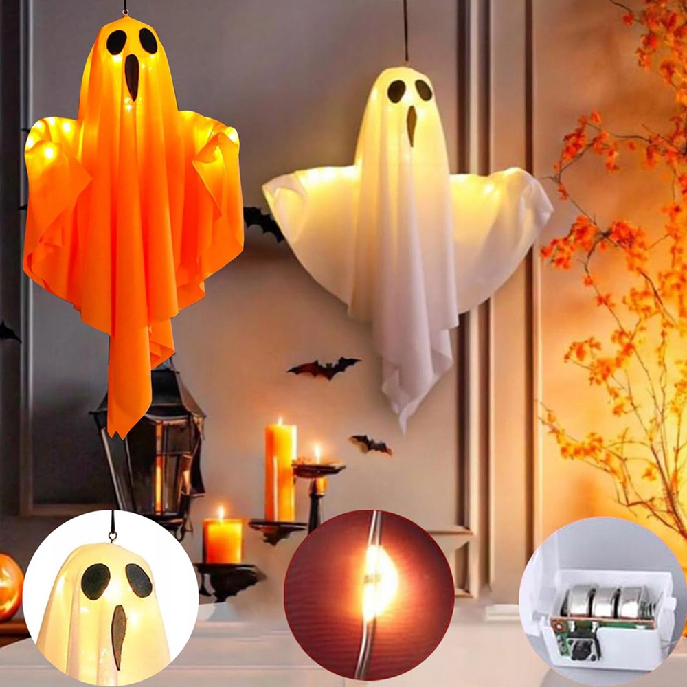 Украшения с призраками для Хэллоуина изготовлены из гладкой полиэфирной ткани и оснащены водонепроницаемыми лампами рождественских деревьев. Они не только очаровательно спроектированы, но и экологически чистые благодаря энергетическим светодиодам, которые экономит энергию. Они идеально подходят для украшений на Хэллоуин в саду или на открытом воздухе, и их также можно использовать в комнатах.