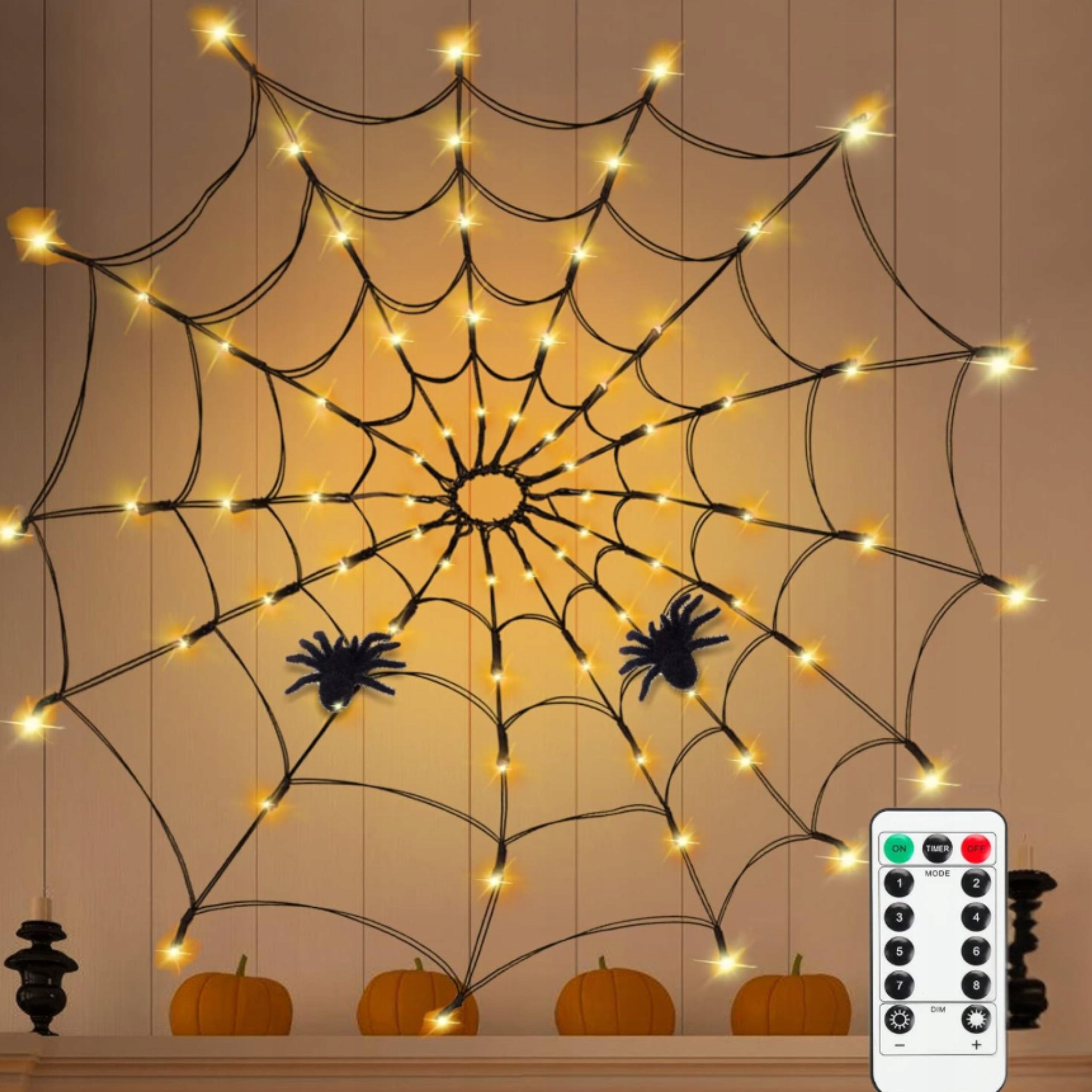 🔮 Декоративная паутина с теплыми светодиодными лампами - идеально подходит для Хэллоуина, тематических событий или осенних композиций.