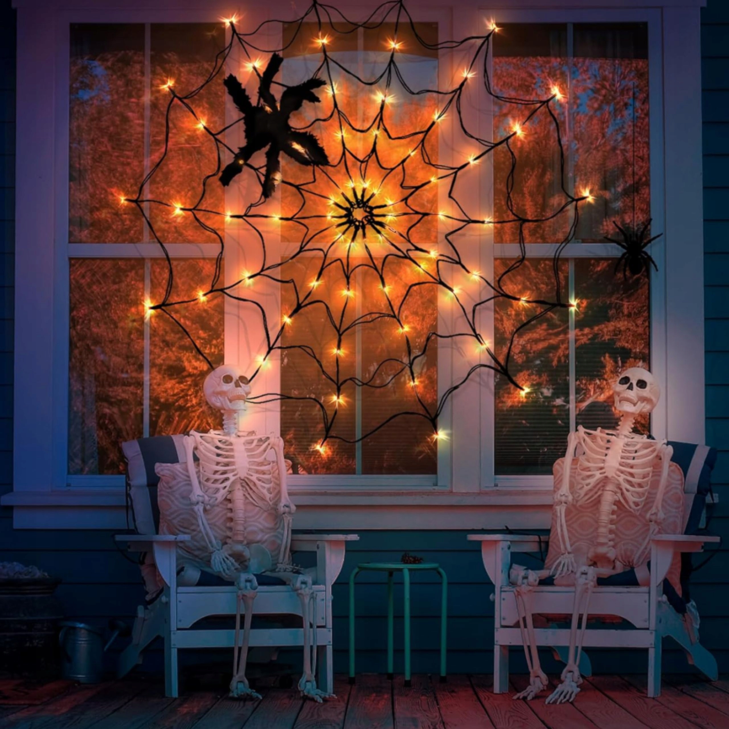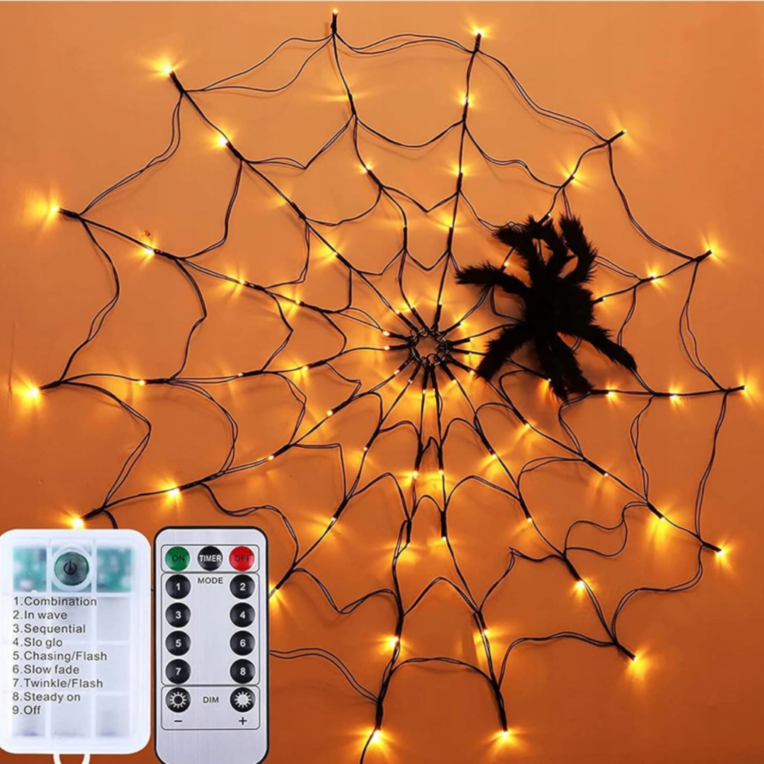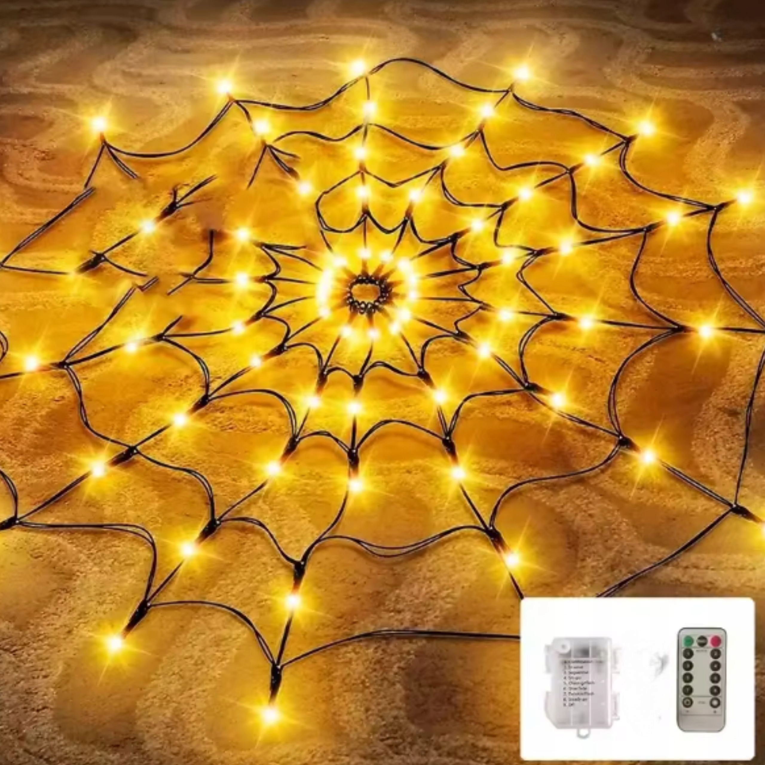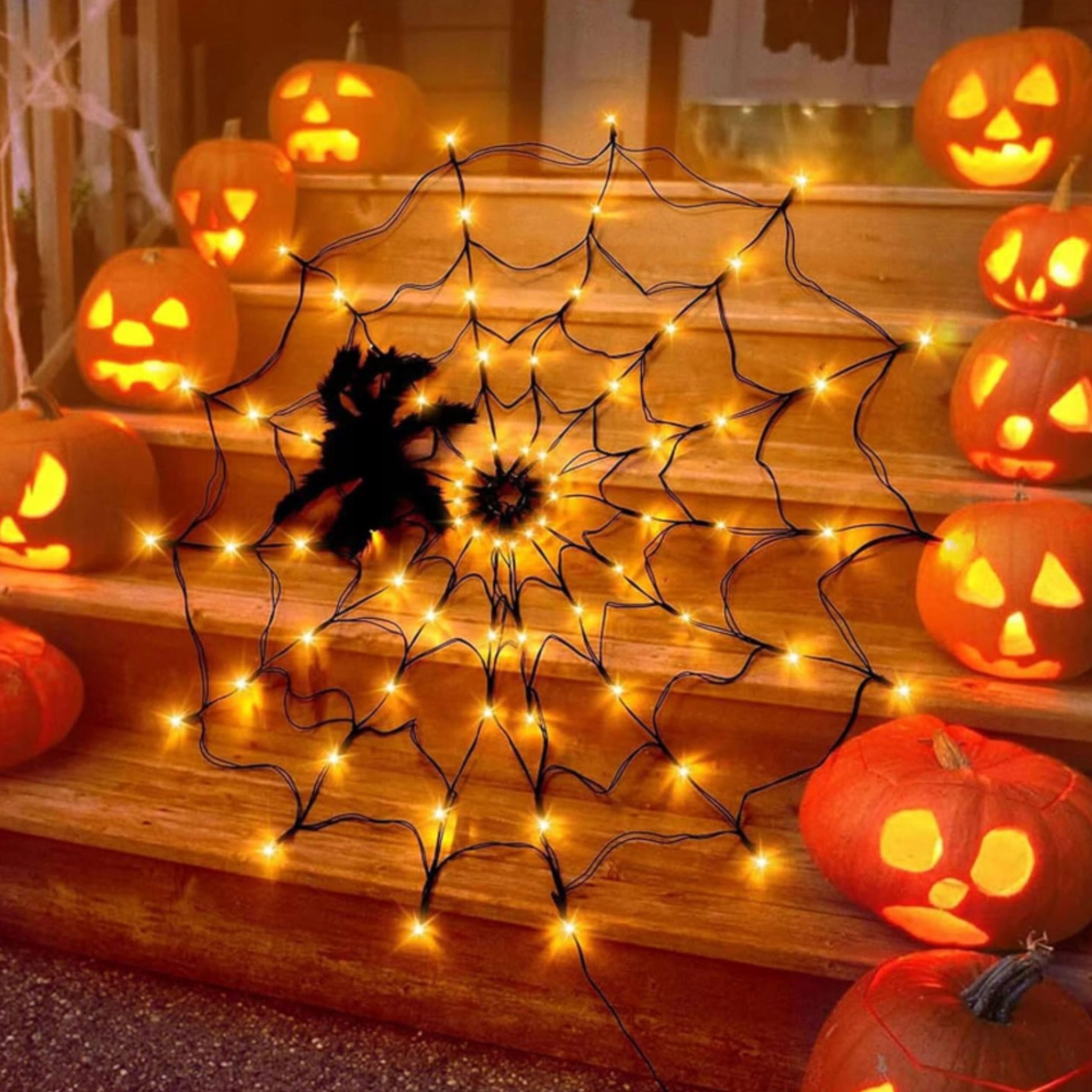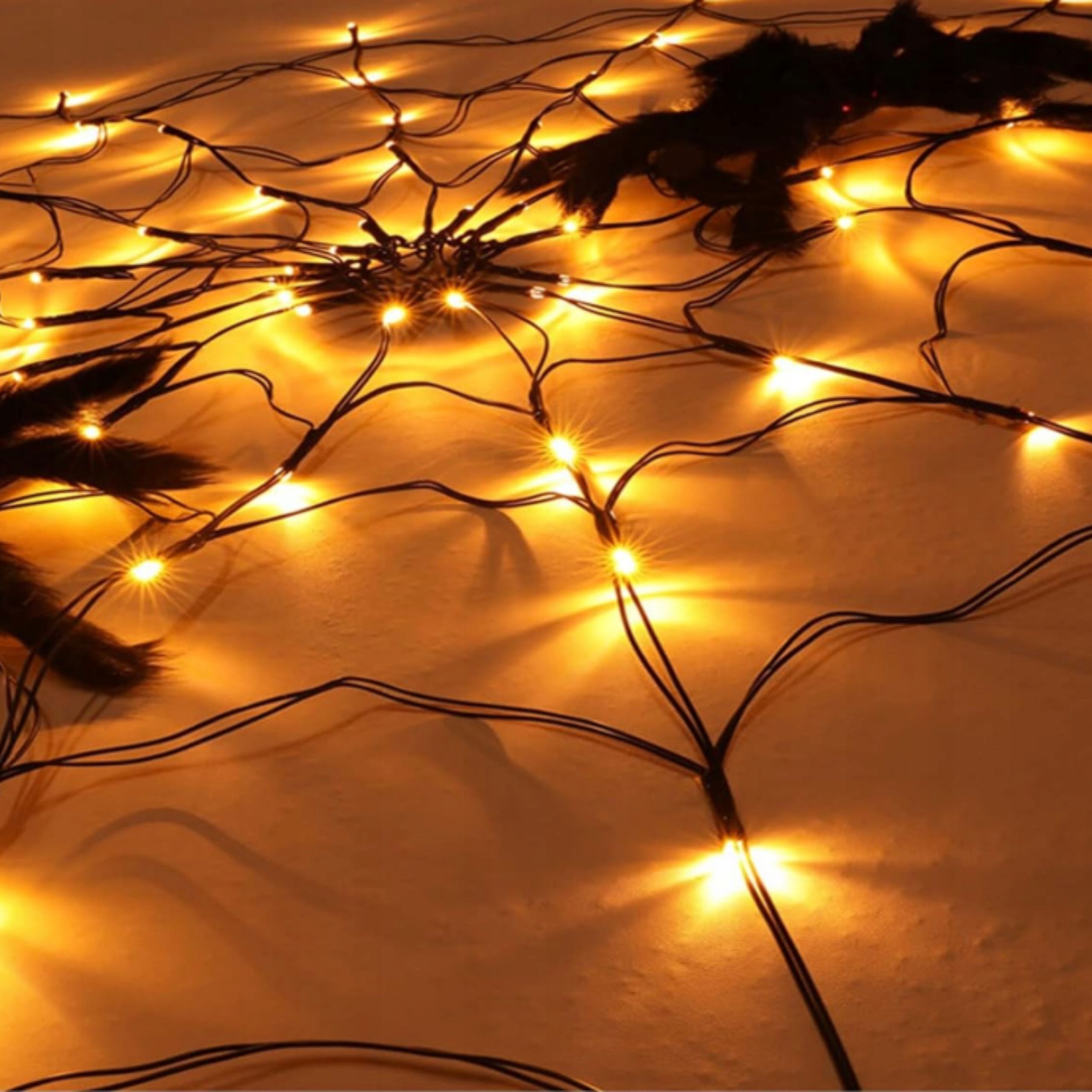 🎃 Декоративная паутина с теплыми светодиодными лампами - идеально подходит для Хэллоуина, тематических событий или осенних композиций.