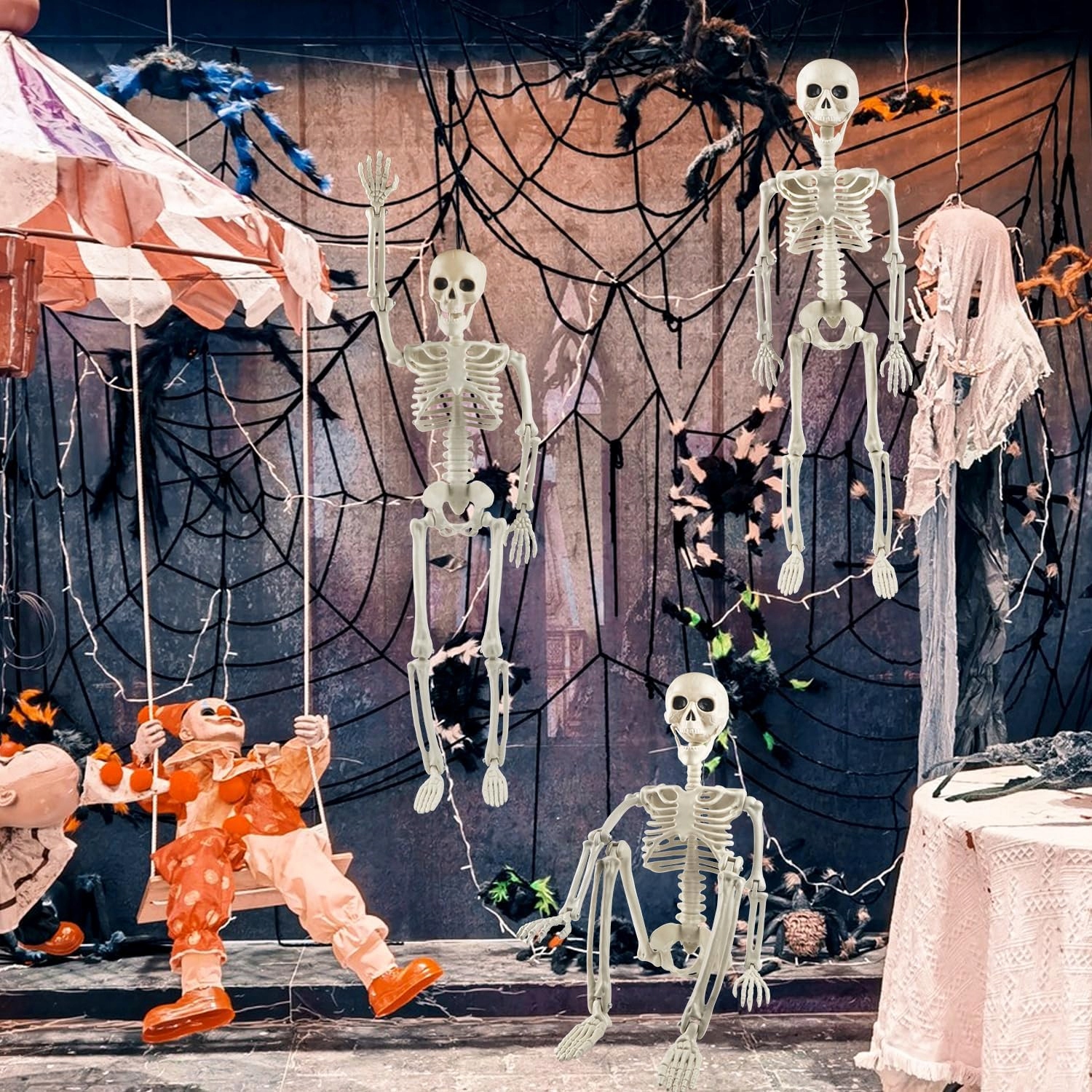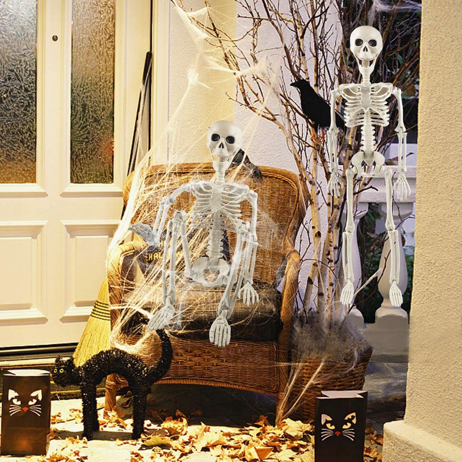 1. Скелет устойчив к погодным условиям? Да, скелет изготовлен из прочного пластика, который устойчив к влаге и изменяющимся погодным условиям, что делает его идеальным для использования как внутри, так и снаружи.