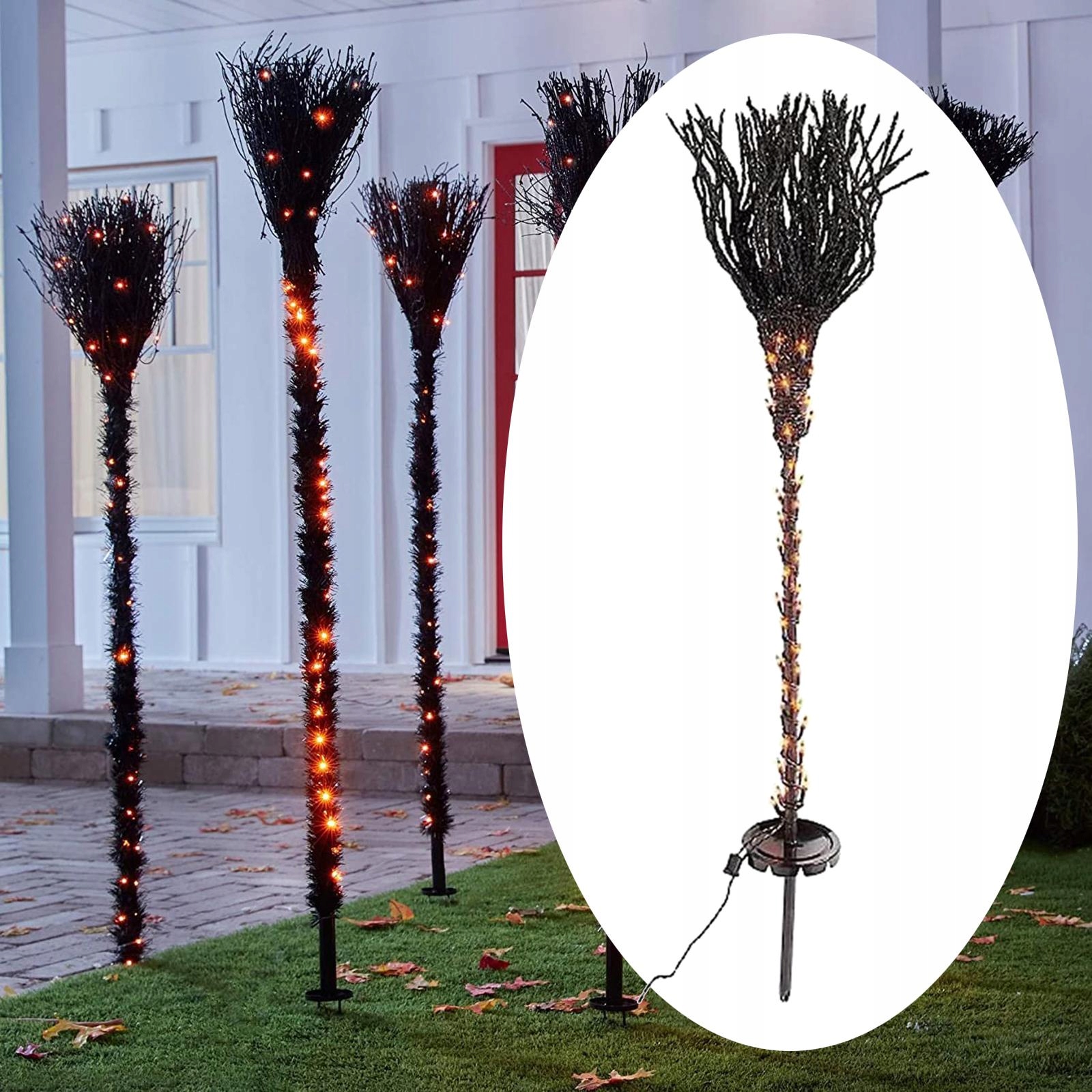 Отлично подходит для курортного сезона: предварительно зажженная метла станет прекрасным украшением сада на Хэллоуин.