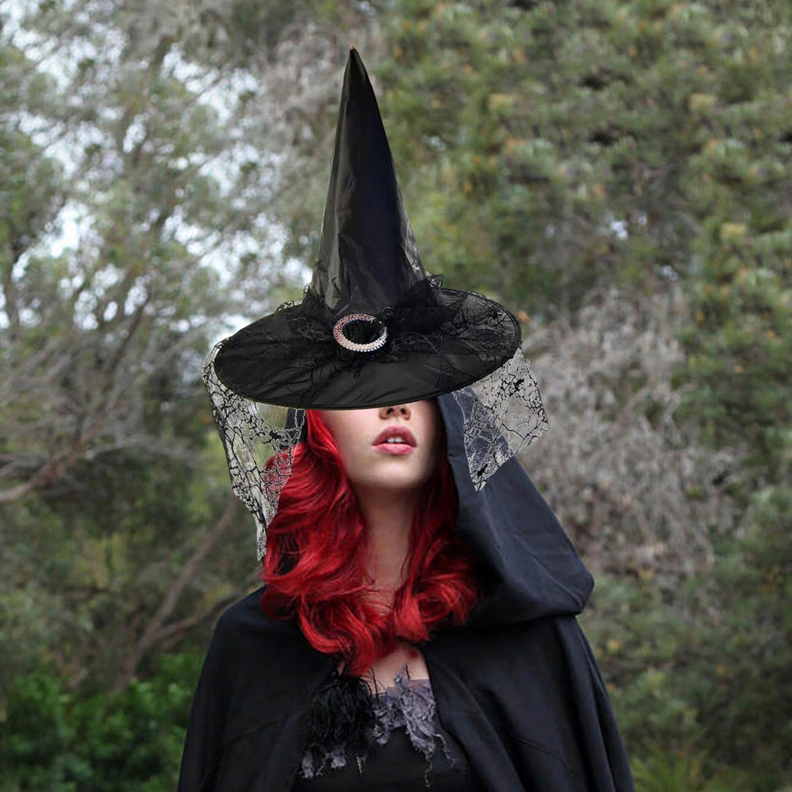 [Шляпа женской ведьмы высокого качества]: Шляпа волшебника сделана из материалов Тафты высочайшего качества, она мягкая, легкая, долговечная и не легко сломать. Размер подходит для большинства женщин.