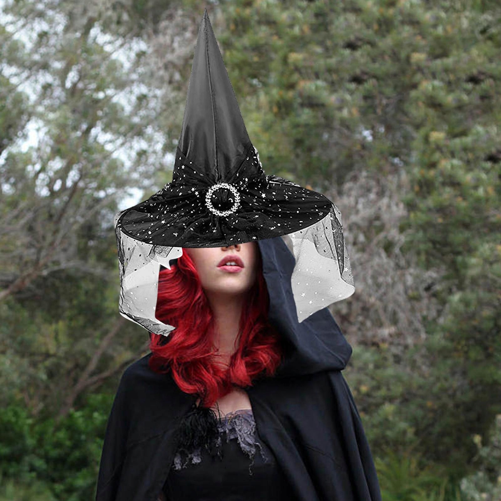 [Шляпа женской ведьмы высокого качества]: Шляпа волшебника сделана из материалов Тафты высочайшего качества, она мягкая, легкая, долговечная и не легко сломать. Размер подходит для большинства женщин.