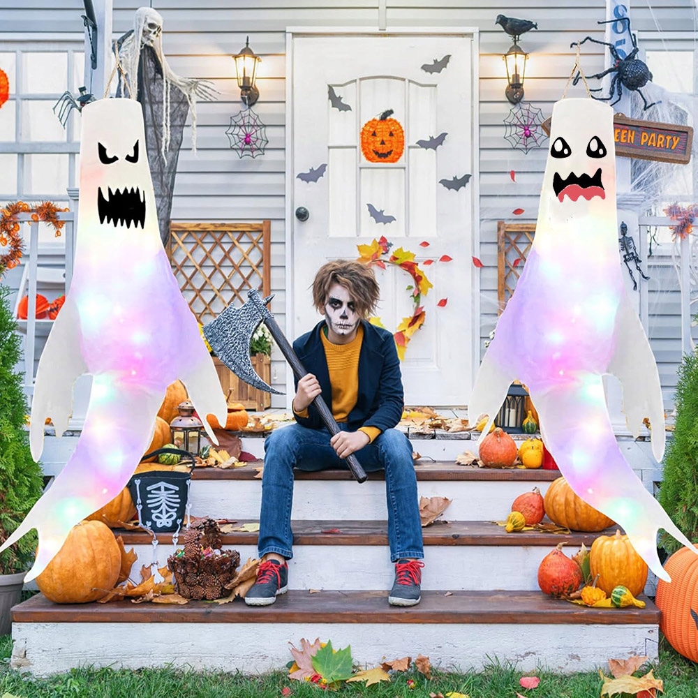 Носки с духом имеют огромное ужасающее выражение на Хэллоуин. Поверхность изготовлена из высококачественной оксфордской ткани, которая удобна и гладкая и может выдерживать легкий дождь. Повесьте их во дворе, и когда наступит ночь, ужасные выражения лица с помощью вспышки/контента создадут уникальную атмосферу Хэллоуина