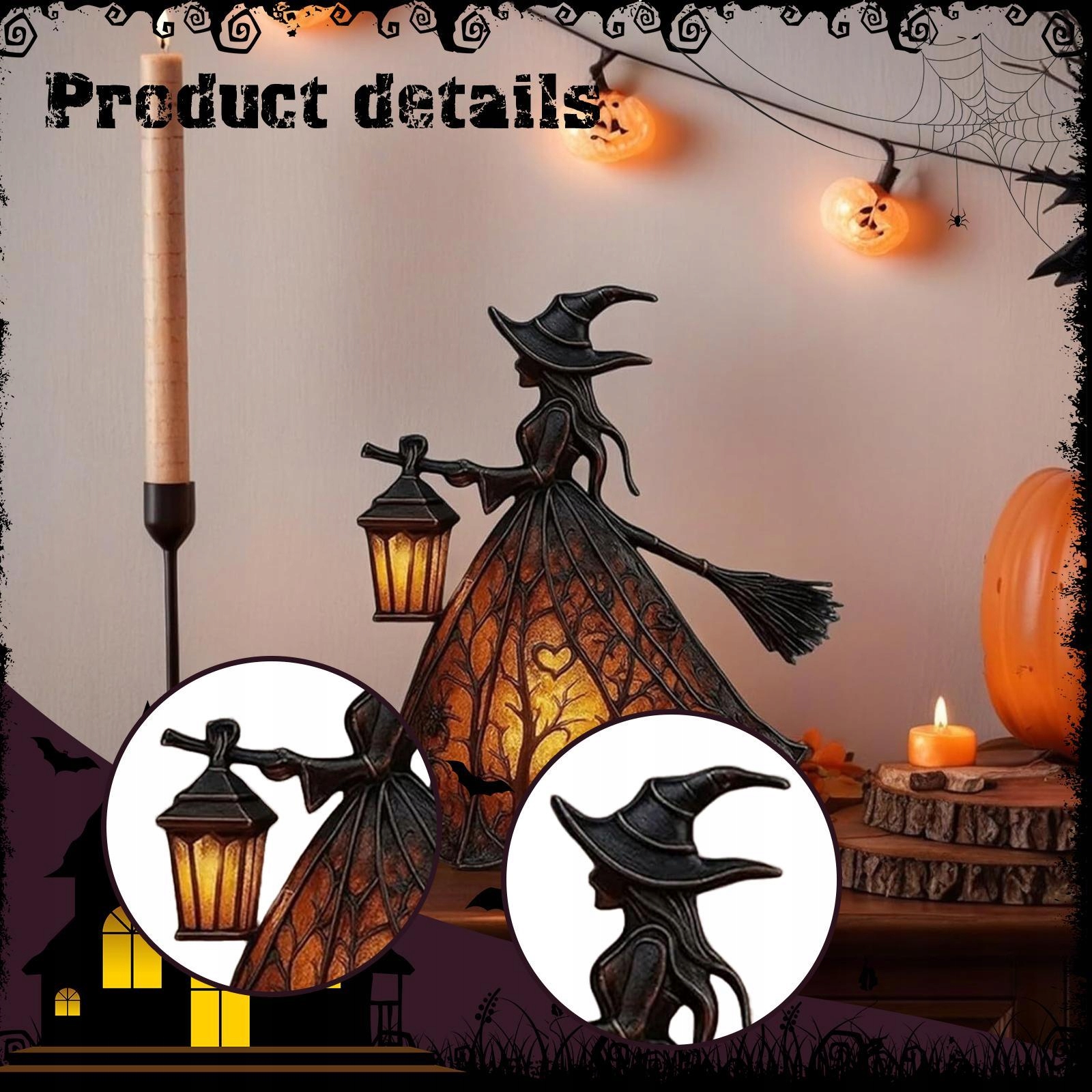 [Готический дизайн]: лампа ведьмы на Хеллоуин с тщательно изготовленной фигуркой ведьмы и деталями старинного фонаря используется для создания жуткой атмосферы Хэллоуина.