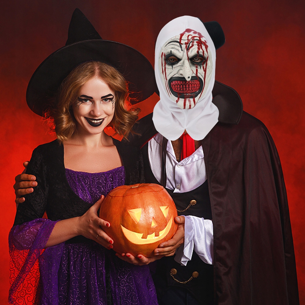 Дизайн маски вдохновлен классическим фильмом «Джокер», идеально воспроизводя детали ужасающего клоуна-убийцы: полумаска с реалистичной текстурой лица и черная широкополая шляпа подчеркивают жуткую атмосферу, создавая захватывающий Хэллоуин. опыт.
