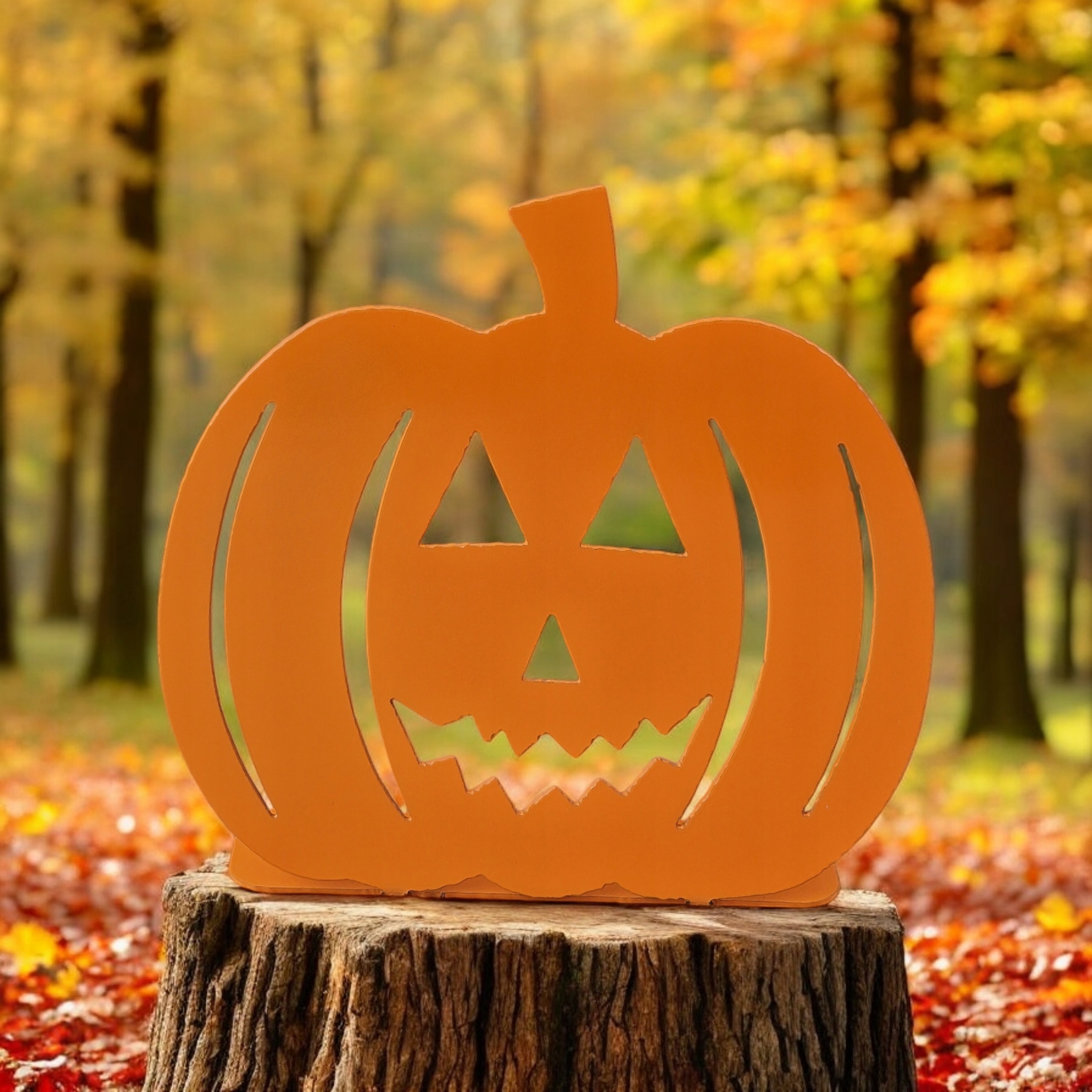 Металлическая тыква с порошковым покрытием — отличный способ привнести осеннюю атмосферу в ваше пространство на открытом воздухе.