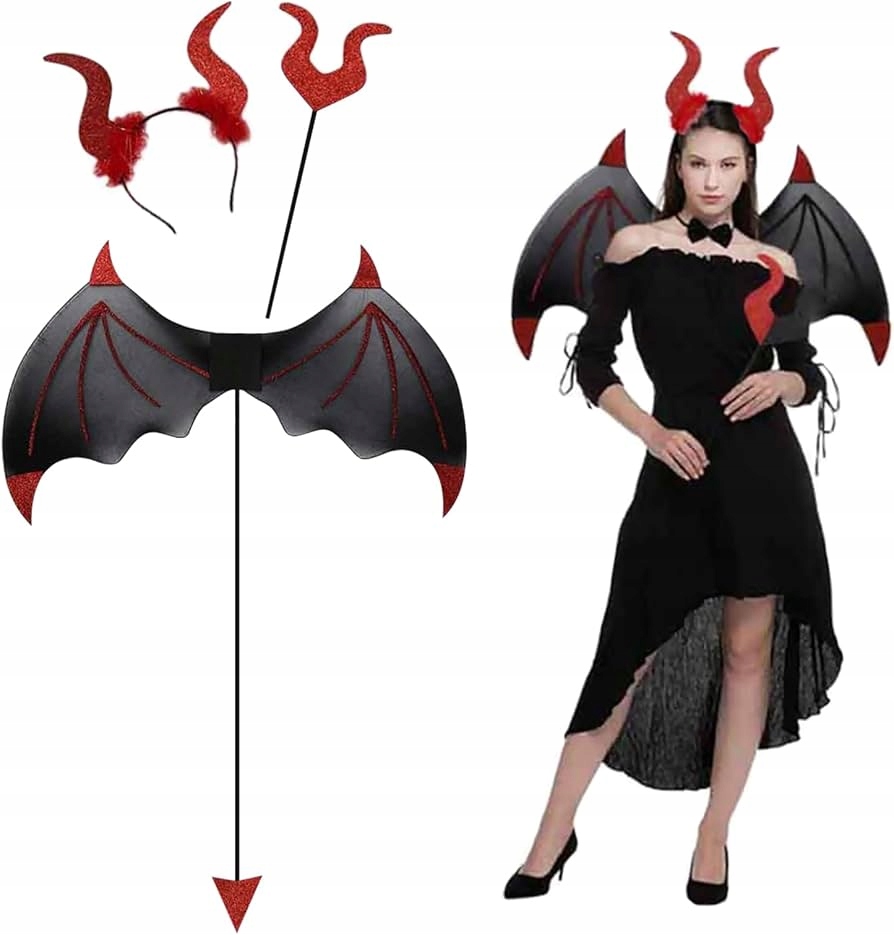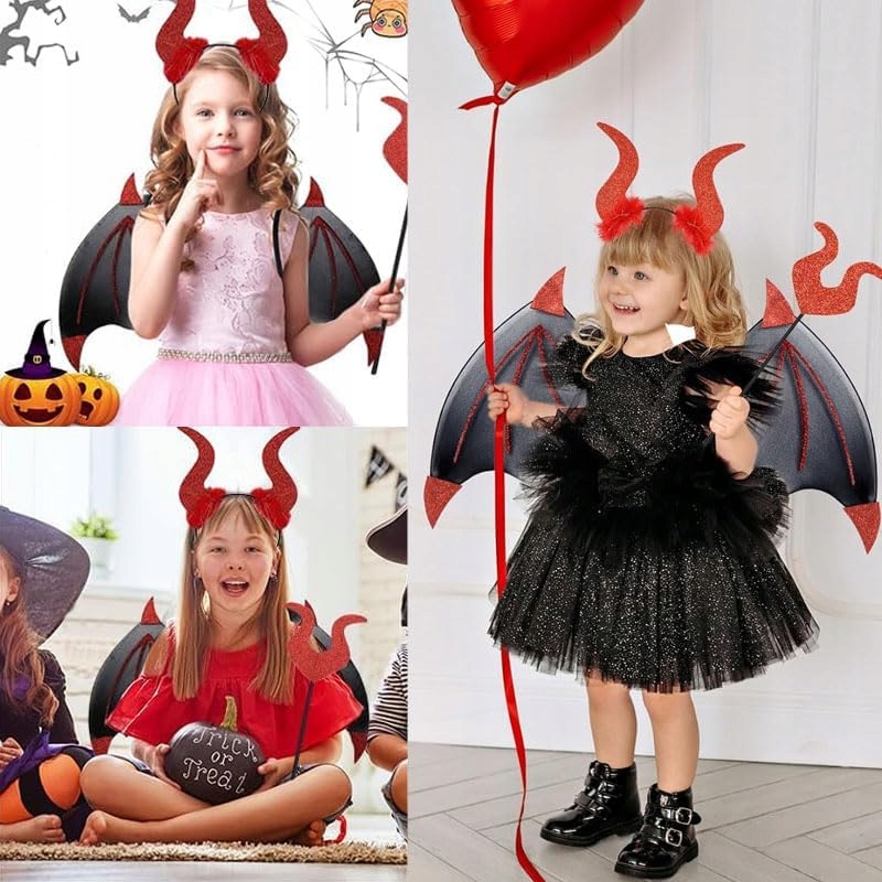 ✅ Крылья:красивые большие крылья с длинным дьявольским хвостом, украшенные красными блестками и шипами, легко крепятся на резинке ленты, универсальный размер.