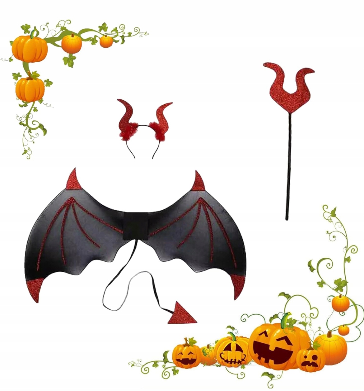 ХЕЛЛОВІН КОСТЮМ ДИЯВОЛ, ДИЯВОЛ, РІДНИЙ М'ЯЧ, ВИЛКИ, РОГИ, КРИЛА ДИЯВОЛА 4в1