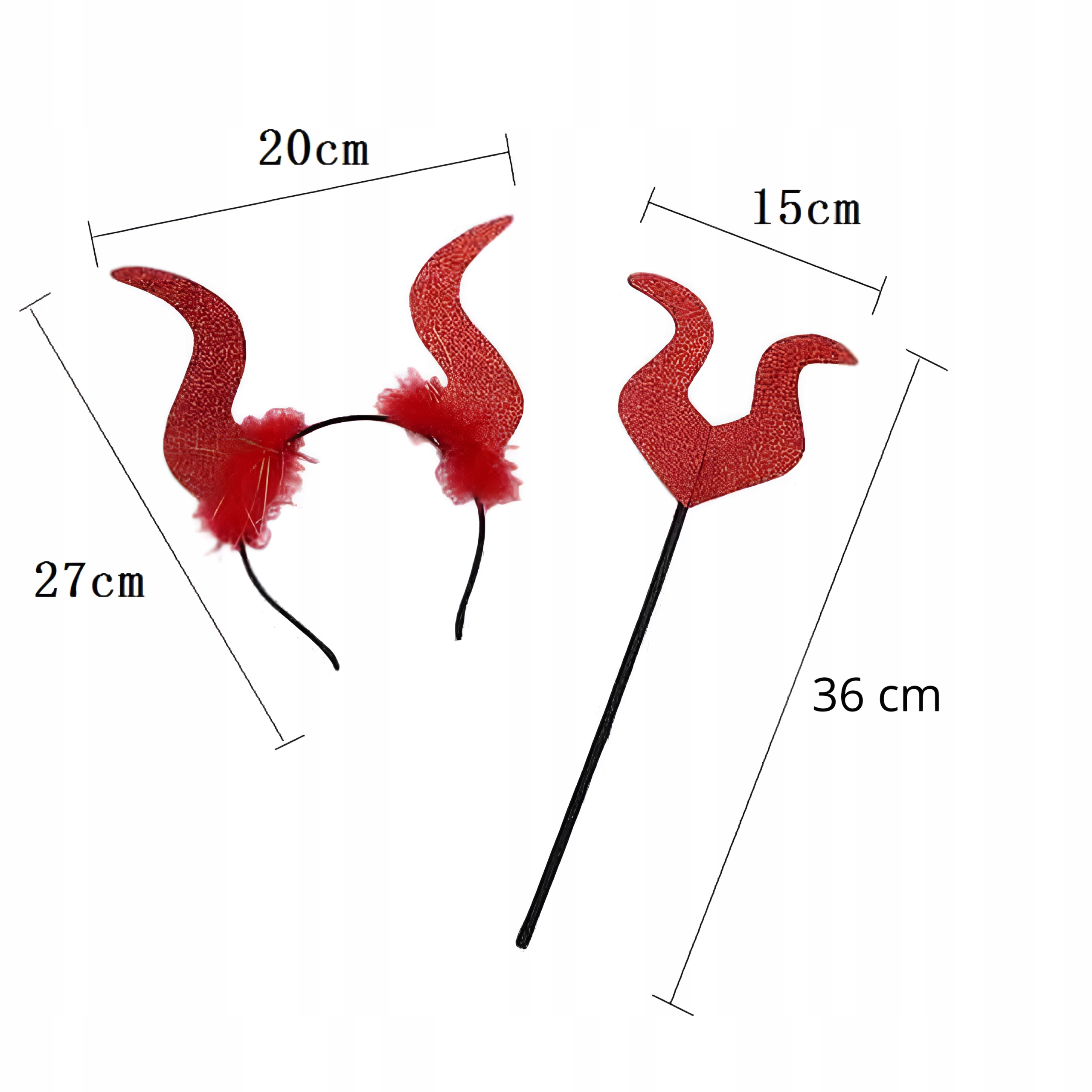 ✅ Повязка на голову: повязка на голову с красными блестящими рогами, украшенными черными перьями, универсальный размер.