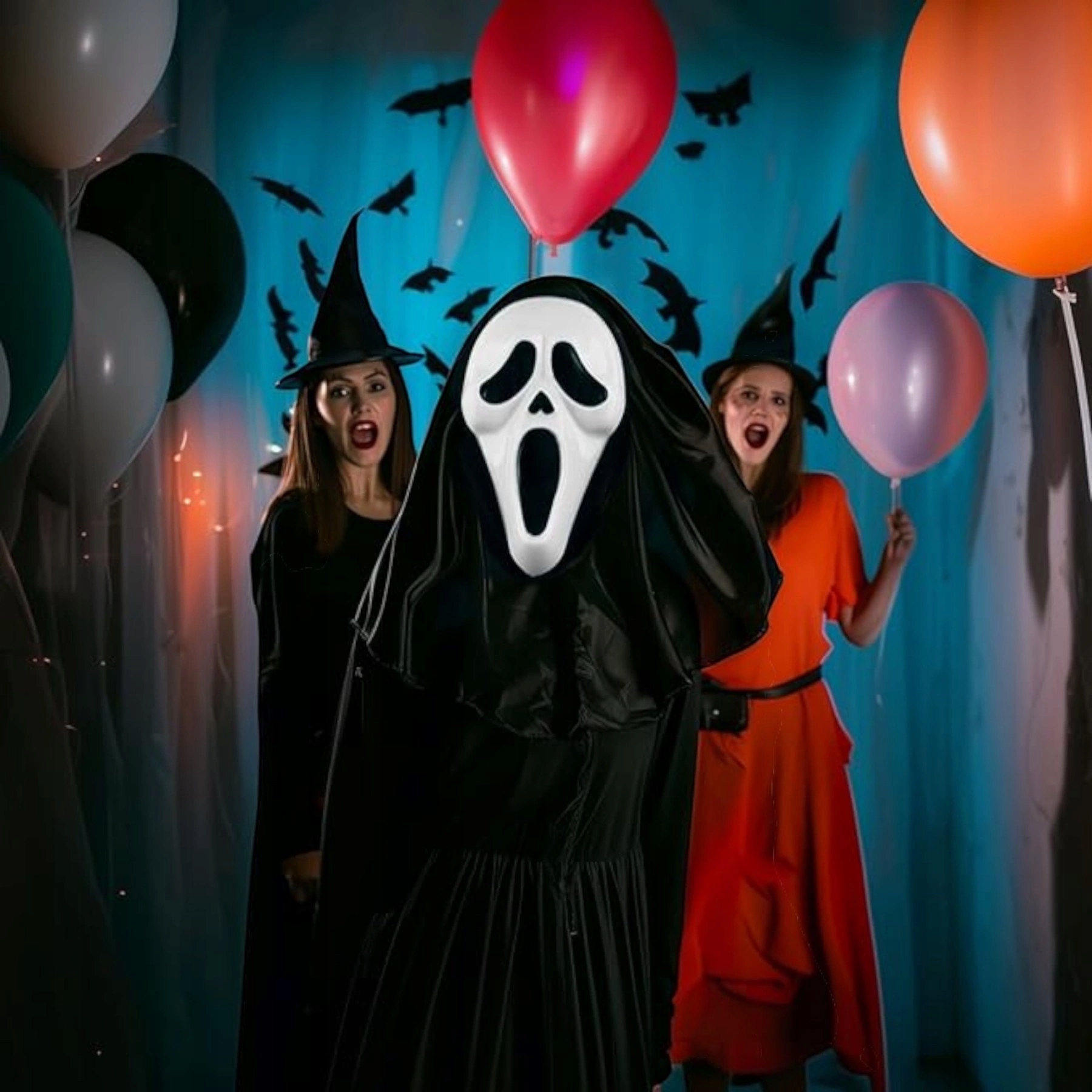 Стиль дополнен культовой маской из фильма «Крик», который каждый любитель ужасов узнает с первого взгляда. Точно воспроизведенное испуганное выражение лица, черный капюшон и большие отверстия для глаз с сеткой обеспечивают аутентичный эффект и полный комфорт при ношении.