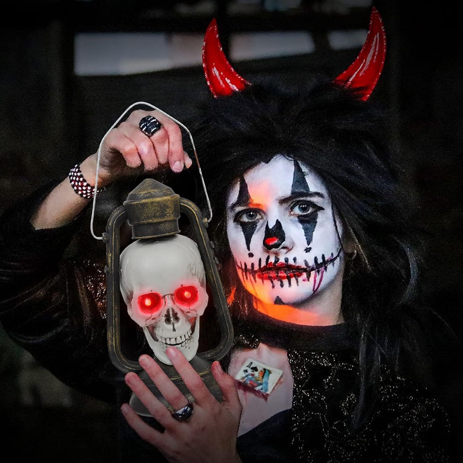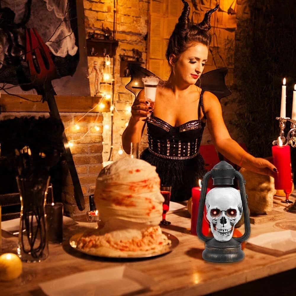 Лампы-черепа можно подвешивать на деревьях, карнизах и т. д., а также использовать в качестве подставки в руках или ставить на стол в качестве подставки. украшения.