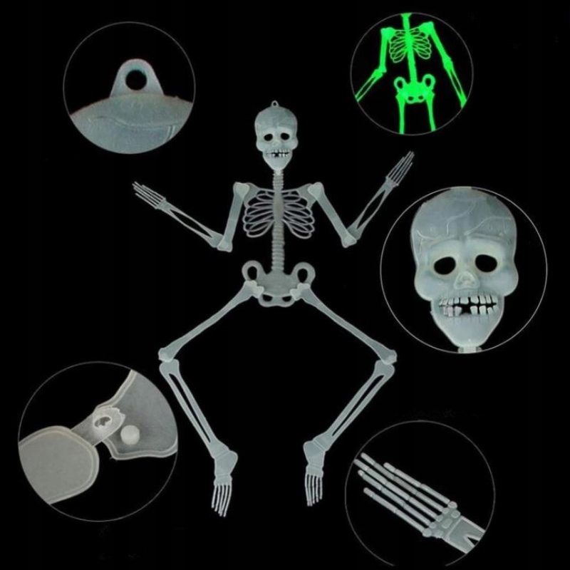 - Скелет покрыт флуоресцентным покрытием, благодаря которому он светится в темноте после воздействия света ,