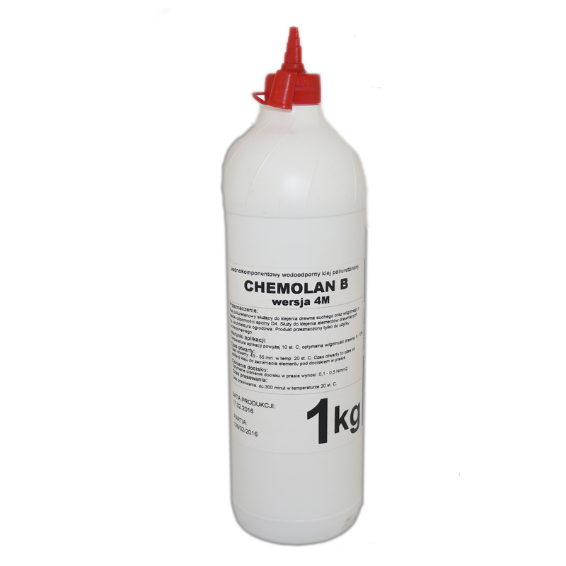 Химиолан B Клей в версии 4/M -это водонепроницаемый, один -компонентный полиуретановый клей, укрепленный увлажнение от воздуха. Это липкая жидкость с коричневым цветом. Это посвящено склеиванию сухого дерева, что означает, что он часто используется при производстве деревянной изогнутой лестницы.
