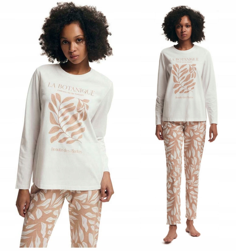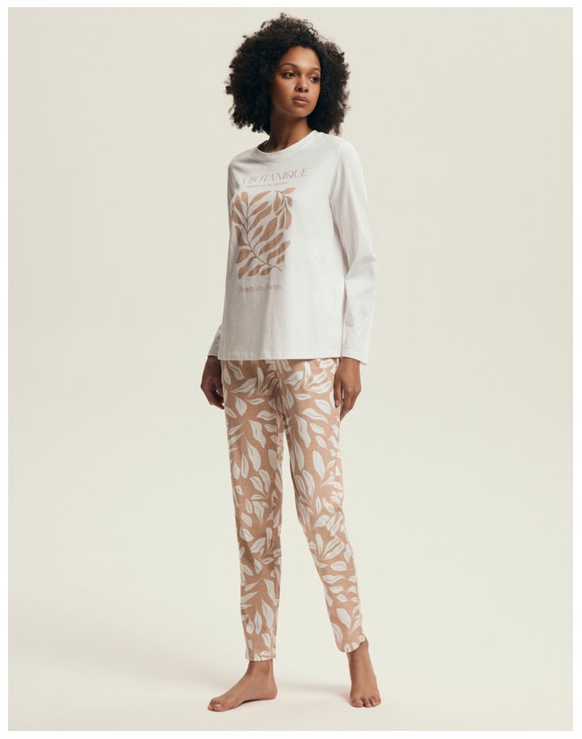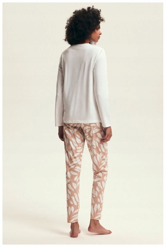 HENDERSON ЖЕНСКАЯ ПИЖАМА ИЗ ХЛОПКА С ДЛИННЫМ РУКАВОМ БЕЛАЯ БЕЖЕВАЯ DEXTRA L