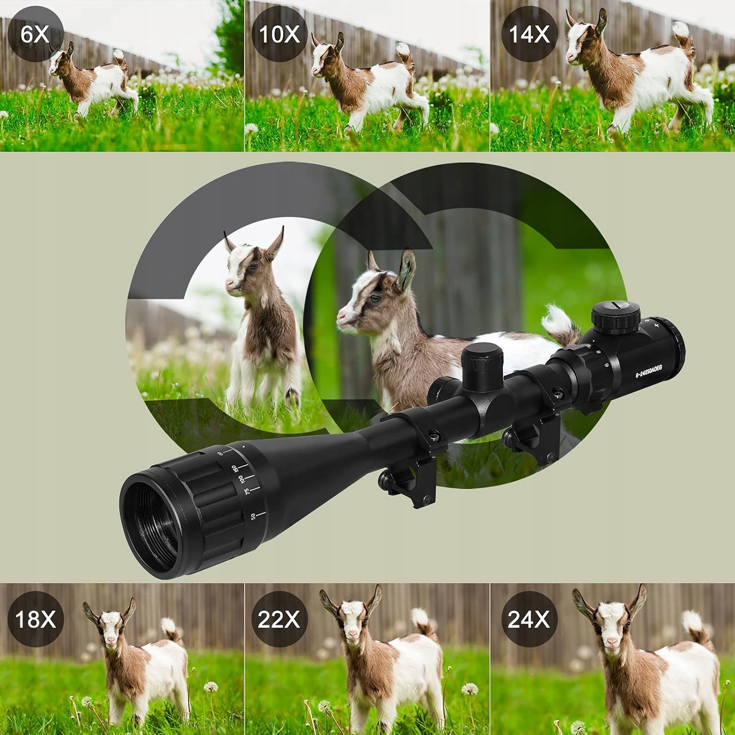 увеличение: 6-24x50aoeg с 11-мм крепежными элементами; Материал: алюминий. Сетка дальности с маркировкой, которая позволяет оценить расстояние или сбалансировать каплю в мяче. Быстрая и безопасная сборка. Обеспечивает быстрые и простые целевые точки для различных расстояний стрельбы. Он предоставляет Strzelc более естественный подход между зрением и целью. Водонепроницаемый, анти -ффо -и -ударный устойчивый. Алюминиевый сплав с прочной черной матовой отделкой. Кресты выделены, что делает их более заметными. Зеленое и красное освещение для различных сред. Идеально подходит для каждой области и для каждой погоды