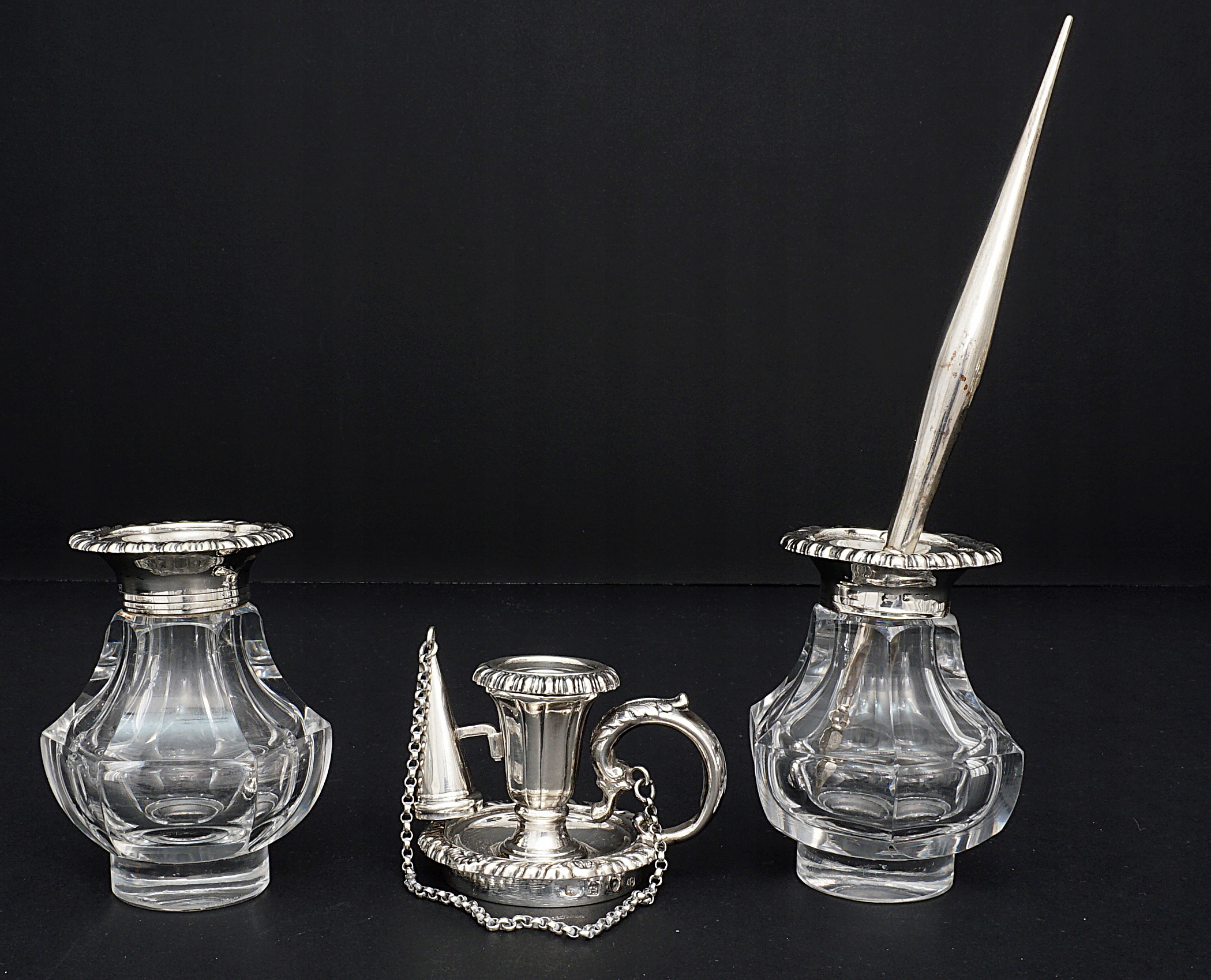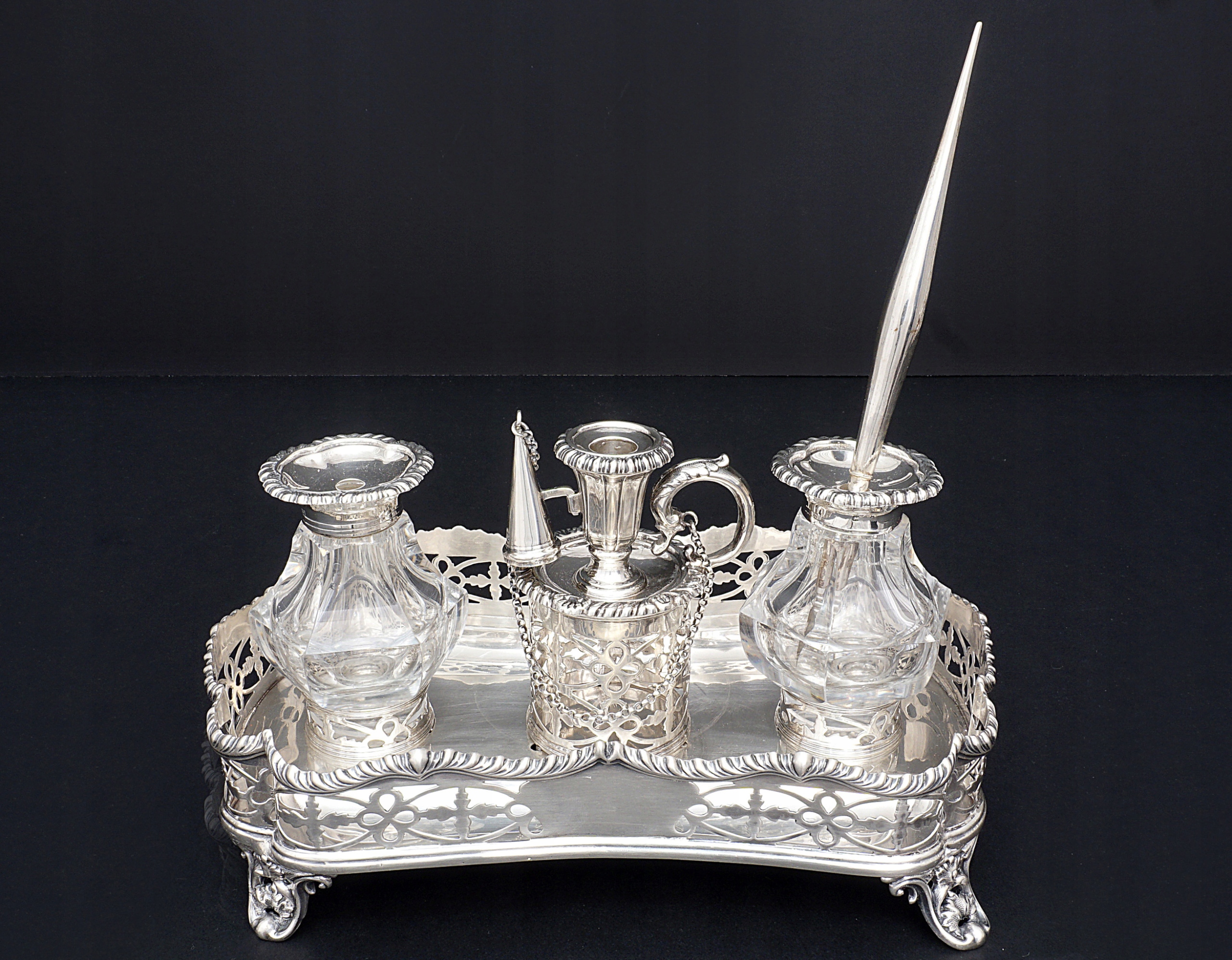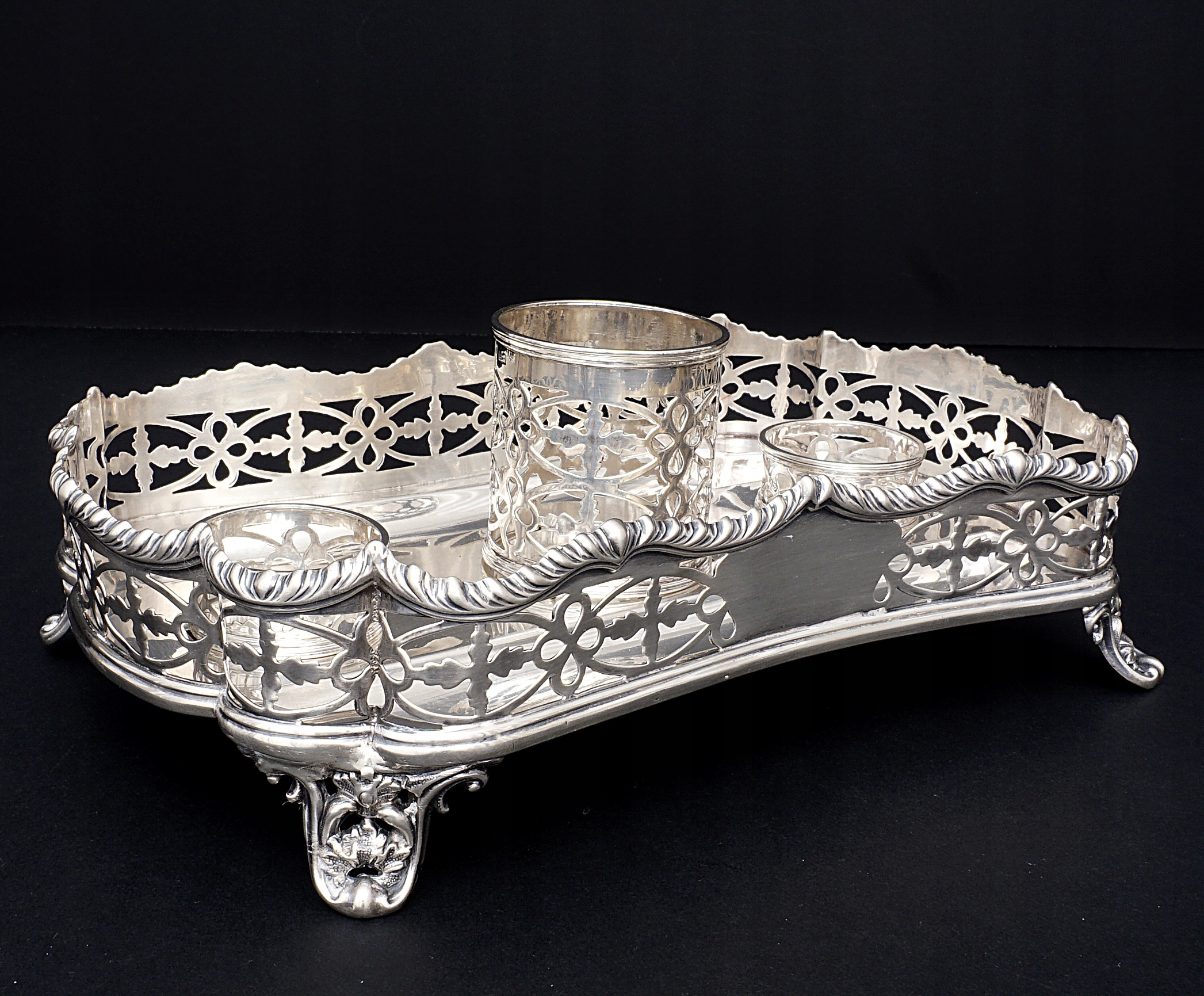 Большая чернильница в викторианском стиле из серебра 925 пробы.