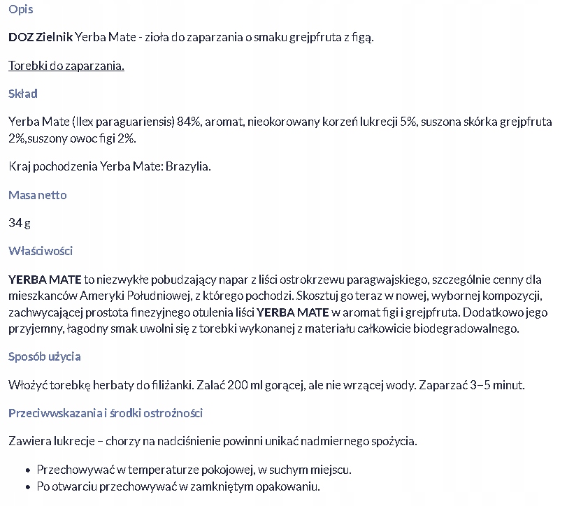 HERBAL DOZ, Йерба Мате со вкусом грейпфрута и инжира, 1,7 г, 20 пакетиков