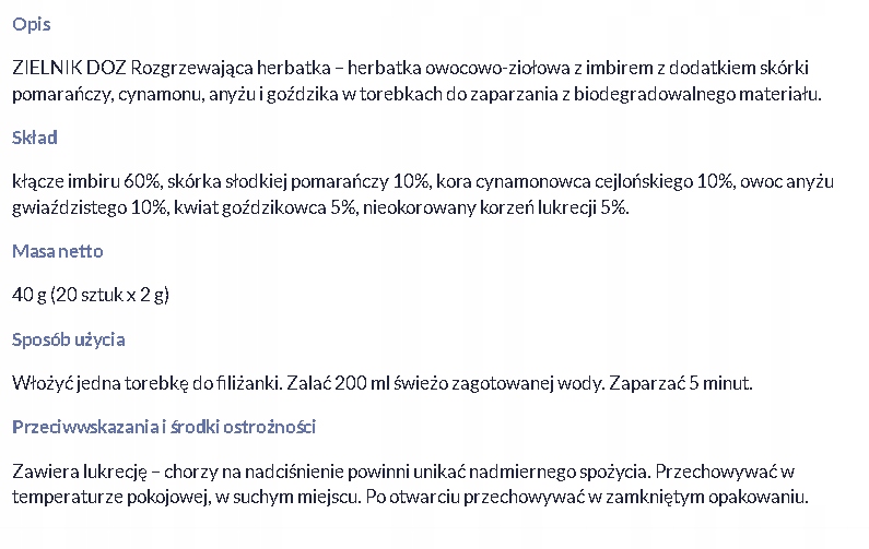 HERBAL DOZ Согревающий чай, 20 х 2 г