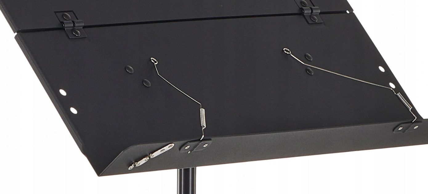 Удобный пюпитр: большая твердая поверхность для нот размером 480×345 мм, оснащенная держателями для хранения листов бумаги. Изготовлен из однородного алюминиевого листа, он обеспечивает комфорт и долговечность даже при использовании на открытом воздухе. Возможность наклона от 75 градусов до 90 градусов.