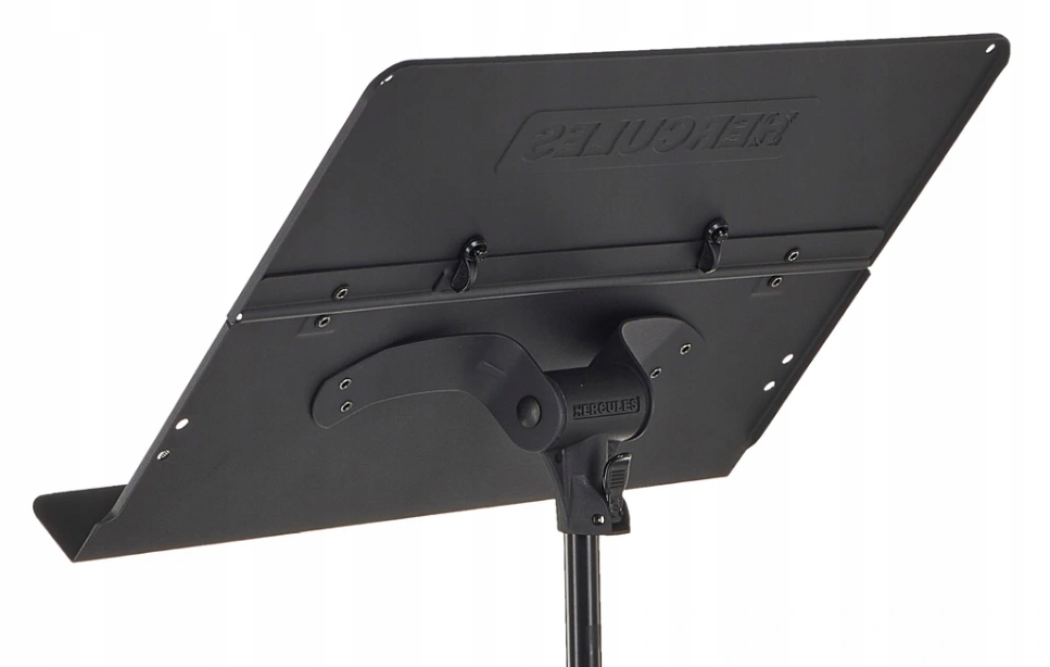 Hercules BS301B — очень легкая и удобная пюпитр из прочного алюминия. Благодаря этому конструкция устойчива и в то же время легко перемещается. Эта модель оснащена цельным, гладким пюпитром без отверстий, что делает ее идеальной для использования как в помещении, так и на открытом воздухе.