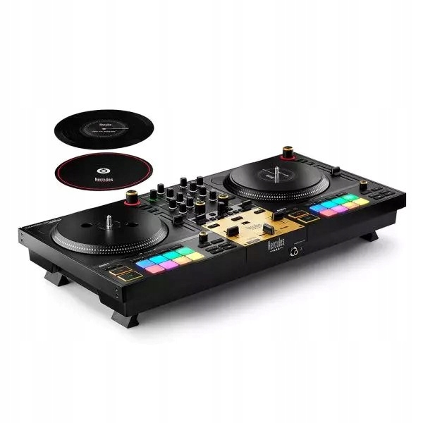 - Моторизованные повороты : два 7-дюймовых моторизованных поворотных столов обеспечивают аутентичные впечатления при смешивании.