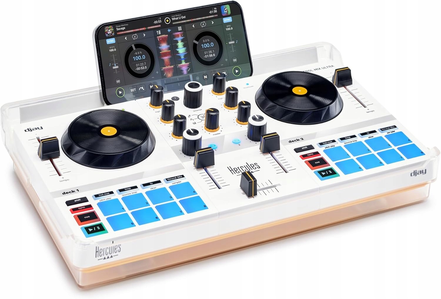 hercules djcontrol mix ultra - компактный, портативный диджейский контроллер, предназначенный для начинающих диджеев и любителей. Совместим со смартфонами и планшетами (iOS/Android), позволяет создавать миксы с профессиональным качеством дома, на вечеринках или в путешествиях. Легкий и легкий в ношении, он идеально подходит в каждом рюкзаке, что делает его идеальным компаньоном для диджеев.