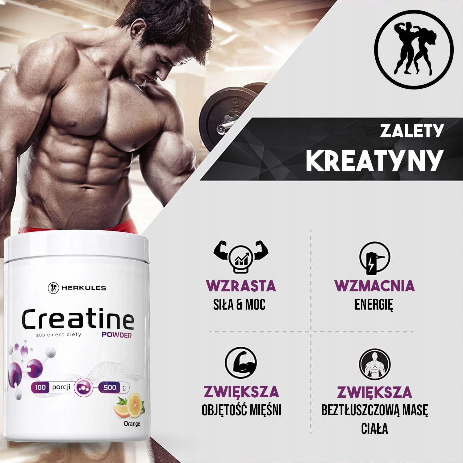 Креатин в сочетании с диетой с высоким содержанием белка дает наибольший эффект не только с точки зрения чисто тренировочных аспектов, но и с точки зрения перитренировочных аспектов. Это позволяет снизить риск травм и, прежде всего, способствует лучшей регенерации организма. Креатиновый порошок HERKULES содержит 500 г активного вещества, что соответствует 100 дням приема!