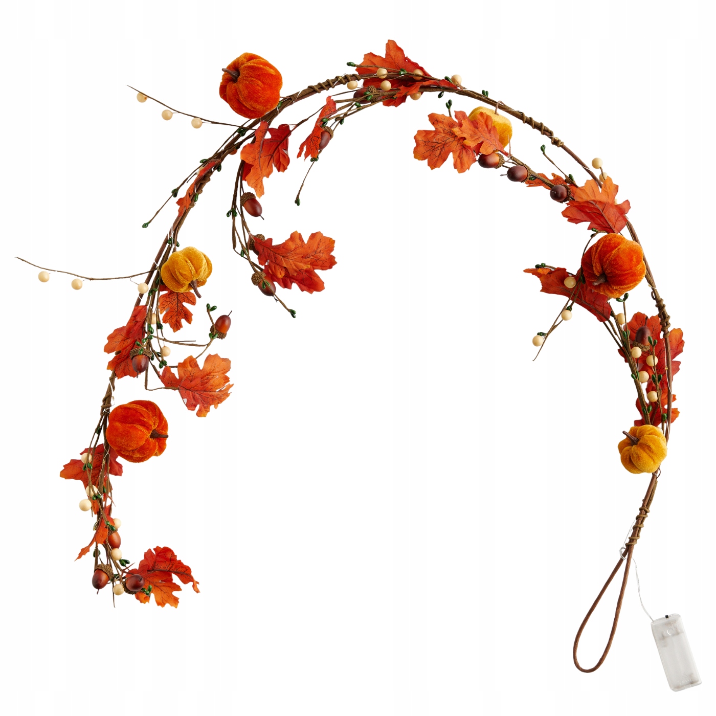 Hervest Girlland - это украшение, которое вводит теплую и уютную осеннюю атмосферу для интерьера. Изготовленный из пластика в оранжевых цветах, украшенный листьями и миниатюрными тыквами, он выглядит красиво на столе, комоде, балконе или в окне. Благодаря питанию аккумуляторов, его можно свободно повесить где угодно, не подключаясь к розетку. Его длина 150 см делает его великолепной во время сезонных аранжировки и встреч с близкими.