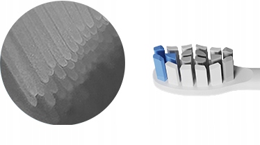 Наконечник содержит синие индикаторные волокна, которые помогают контролировать износ насадки. При правильной чистке 2 раза в день по 2 минуты голубой цвет исчезнет примерно через 3 месяца, а это означает, что пора заменить насадку.