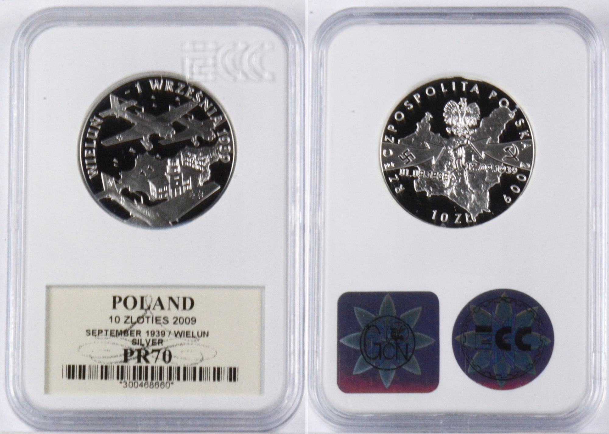 Hg. PLN 10 2009 Wieluń - 1 сентября 1939 г. PR70 21.08