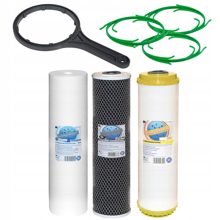 - комплект картриджей: механический, FCPS5M20B, угольный FCCBL20BB и умягчающий FCCST20BB.