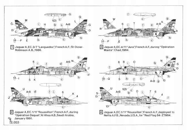 <р>1. 7-IE ,EC3/7 с акульими зубами, 1986 г.; <р>2. 11-EJ, EC 1/11 в Саудовской Аравии, 1991 г.; <р>3. 11-YC, EC 4/11 в Чаде, 1984 г.; <р>4. 11-EV, EC 1/11 во время "Red Flag 84-2", 1984 г.Размер: 9 см x 12 см.