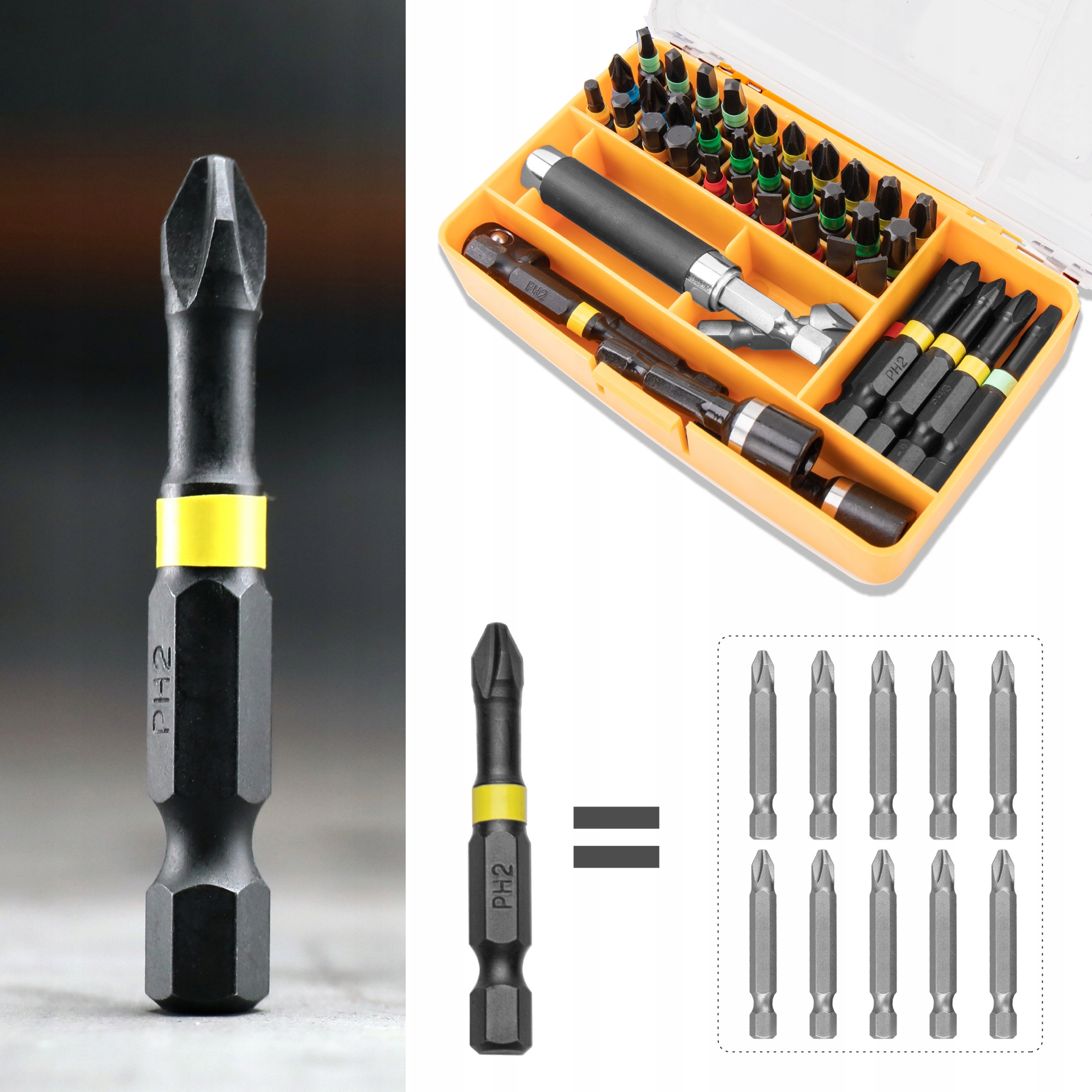 Набор ударных отверток Hi-Spec, состоящий из 44 предметов. Популярные размеры PZ, PH и Torx. Биты-отвертки 1/4 Hex S2 с переходниками для гаек и торцевых головок