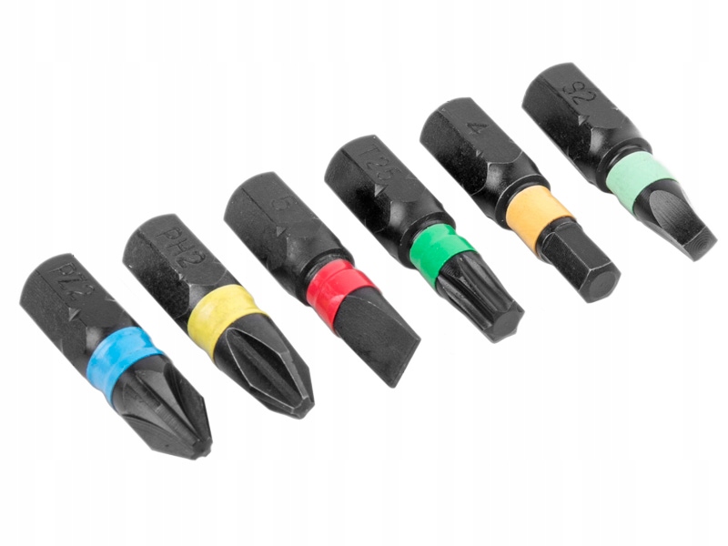 - Плоская: SL3 -4- 5-5,5-6-6; Phillips: PH#1-1-2-2-3-3; Позидрив: ПЗ1-2-3; Квадрат: SQ#1-2-2-3; Шестиугольный: H3-4-5-6; Torx: T10-15-20-25-27-30-40