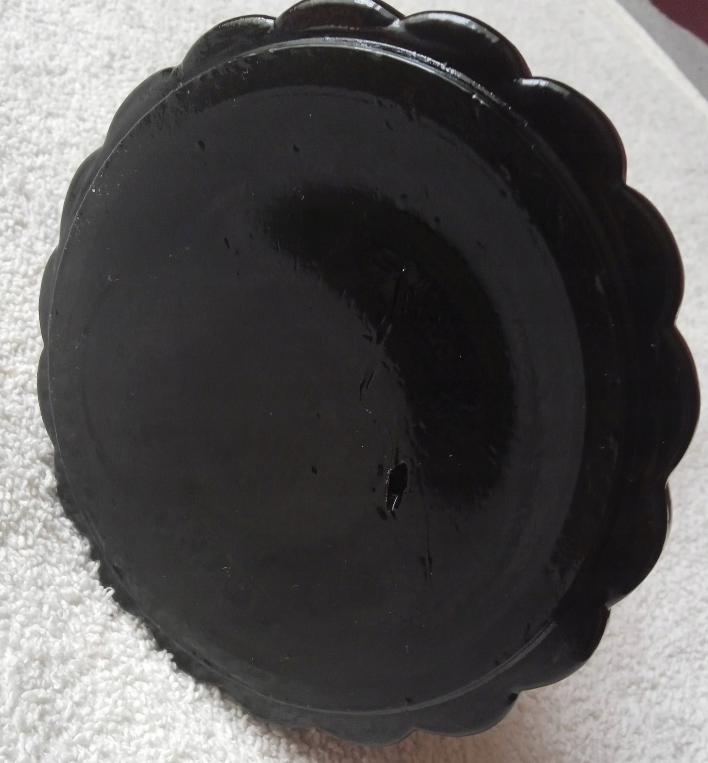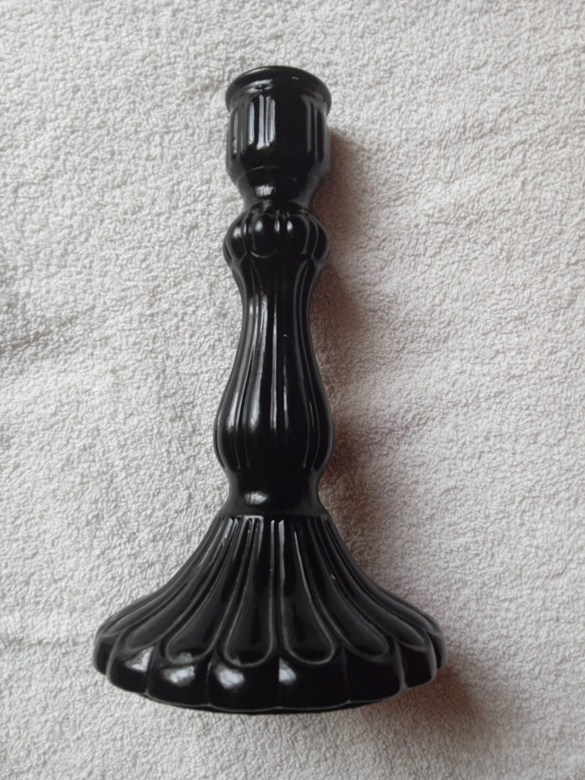 Предлагаю на продажу подсвечник из прессованного гиалитового стекла, производства второй половины 20 века. Состояние хорошее, только на дне имеется небольшой производственный дефект в виде выемки размером в несколько миллиметров. Высота 22 см. Диаметр (сверху) 4,3/3/4,6/3/5/3,2/12,5 см. Размер свечи 3 см.