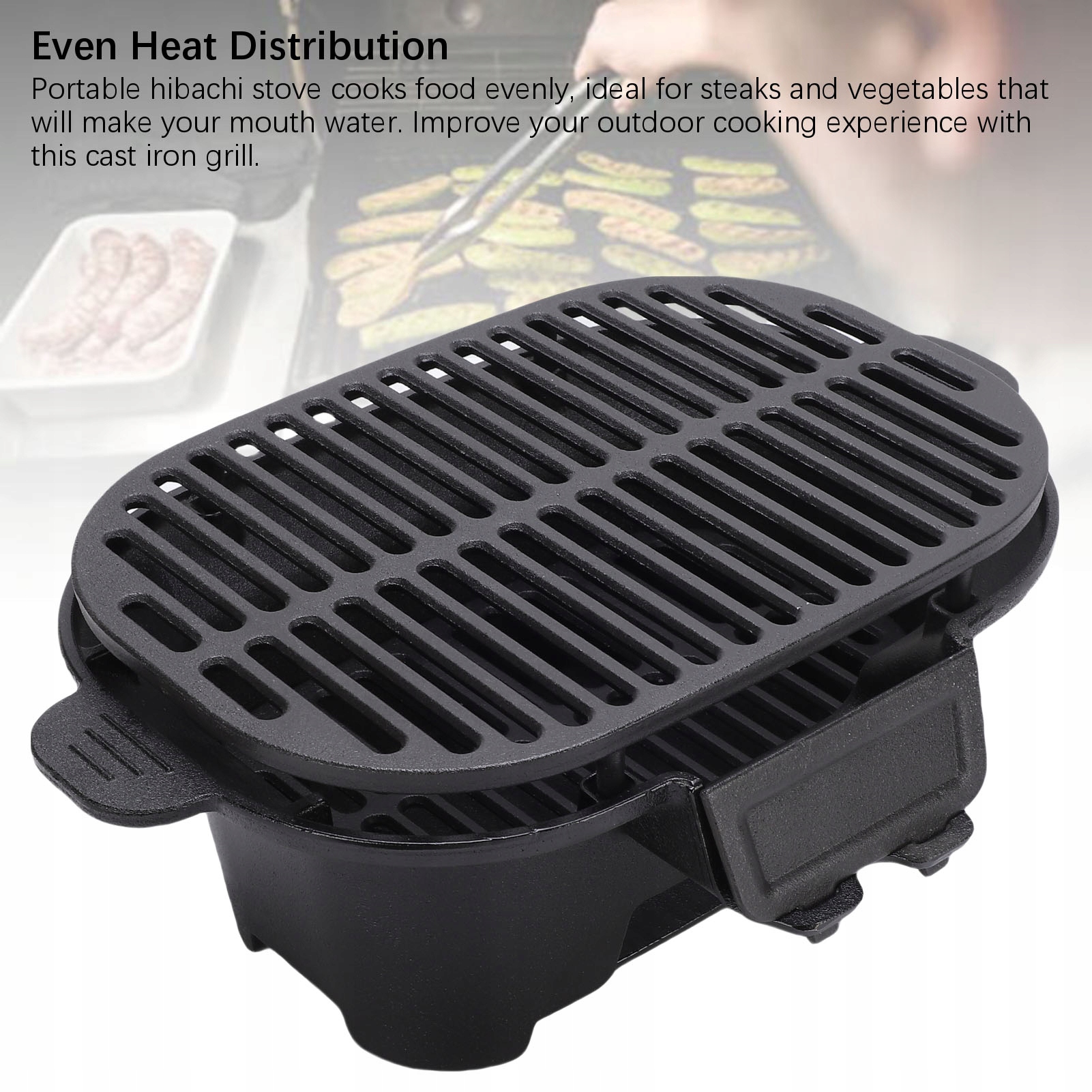 4. Даже распределение тепла: портативная плита Хибачи готовит пищу равномерно, идеально подходит для стейков и овощей, которые делают ваш рот. Улучшите свои впечатления от приготовления свежего воздуха благодаря этому чугунскому грилю.