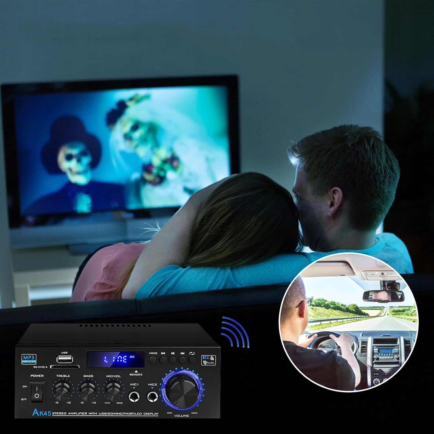 Hifi AK45 Mini Bluetooth Stereo -усилитель, FM -радио для дома или автомобиля