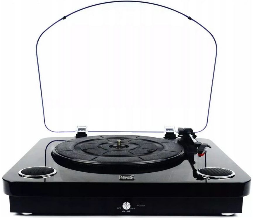 - Портативная конструкция со встроенными динамиками позволяет без проблем транспортировать и хранить проигрыватель.