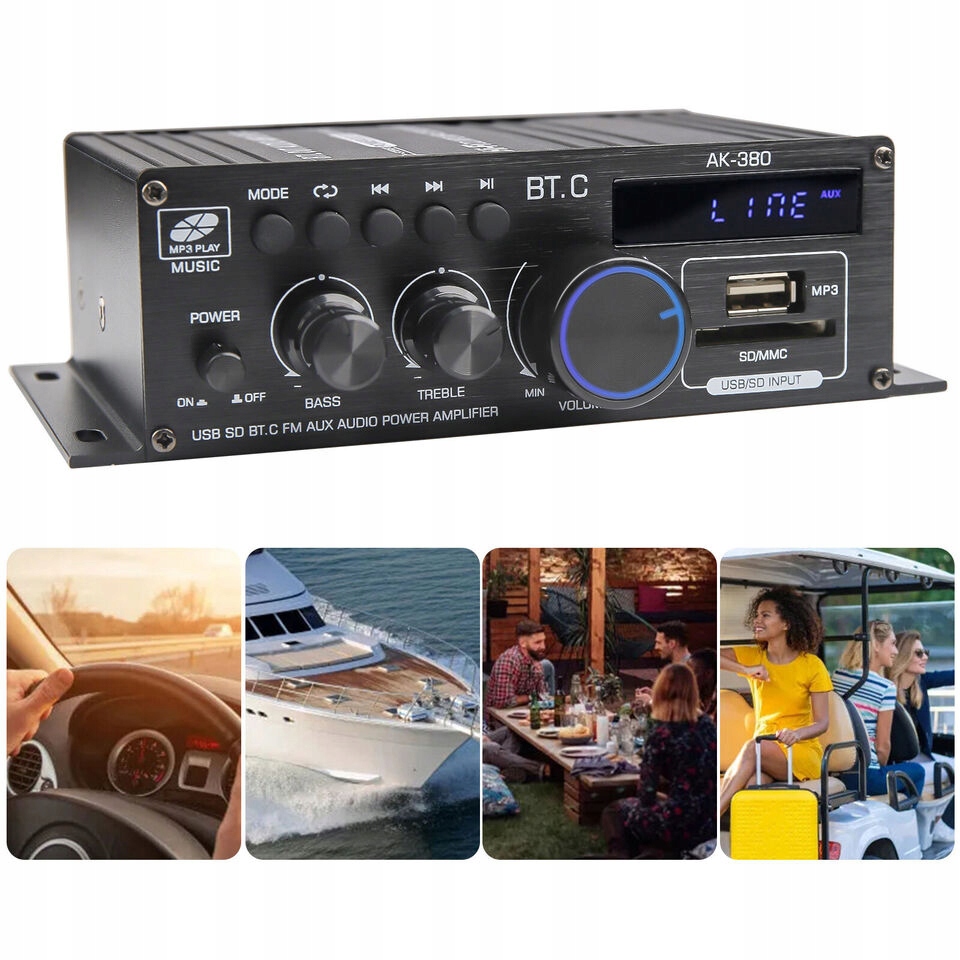⏸Стереоусилитель HiFi мощностью 400 Вт + 400 Вт ► Усилитель мощности звука AK-380, простой, компактный, но практичный и мощный, предлагает Пиковая мощность 400 Вт + 400 Вт и номинальная мощность 40 Вт + 40 Вт, усовершенствованная схема, встроенное ядро Bluetooth 5.0 и чип YD7377, отсутствие щелчков и слышимого шума после подключения Bluetooth, предназначено для клиентов, которым нужен звук HiFi.