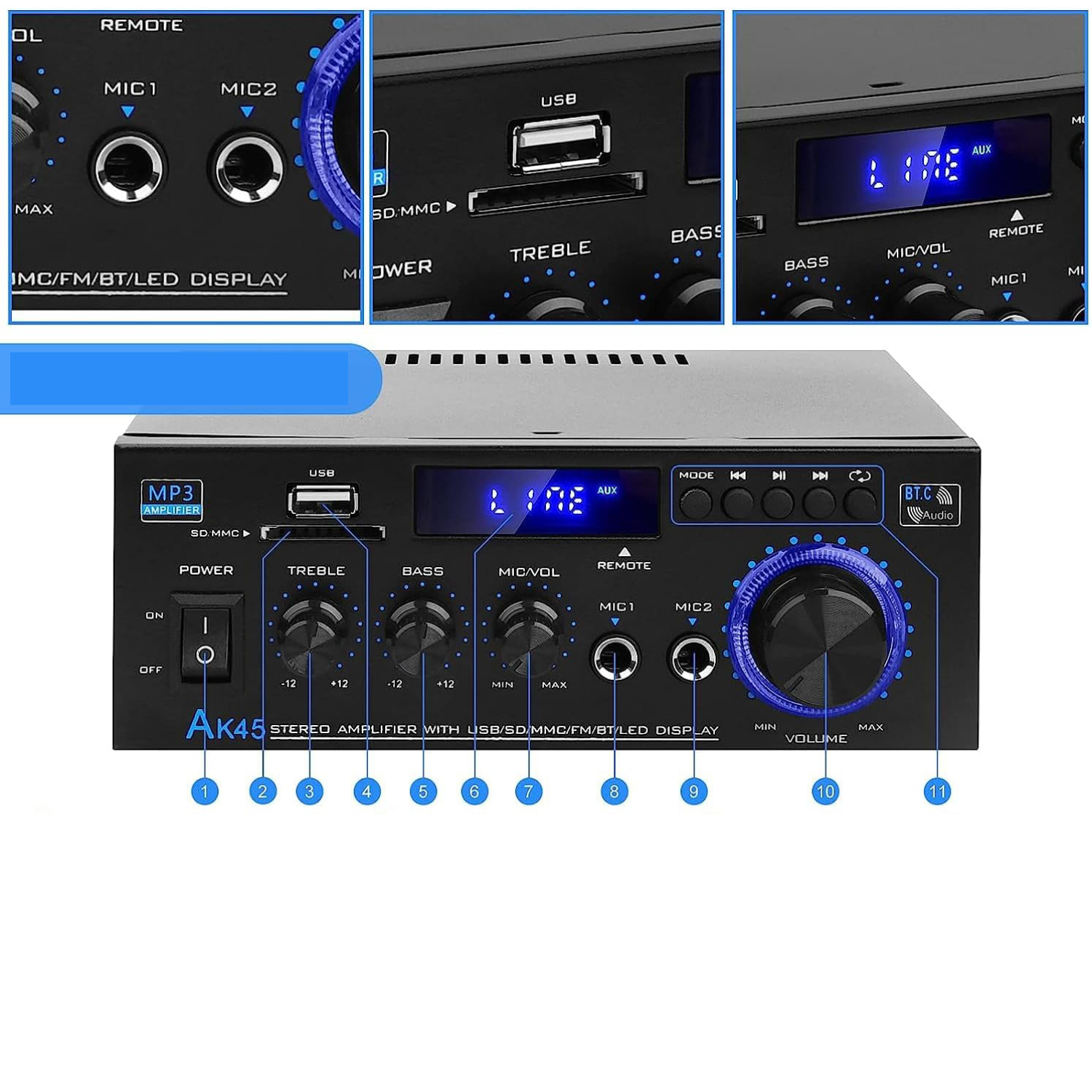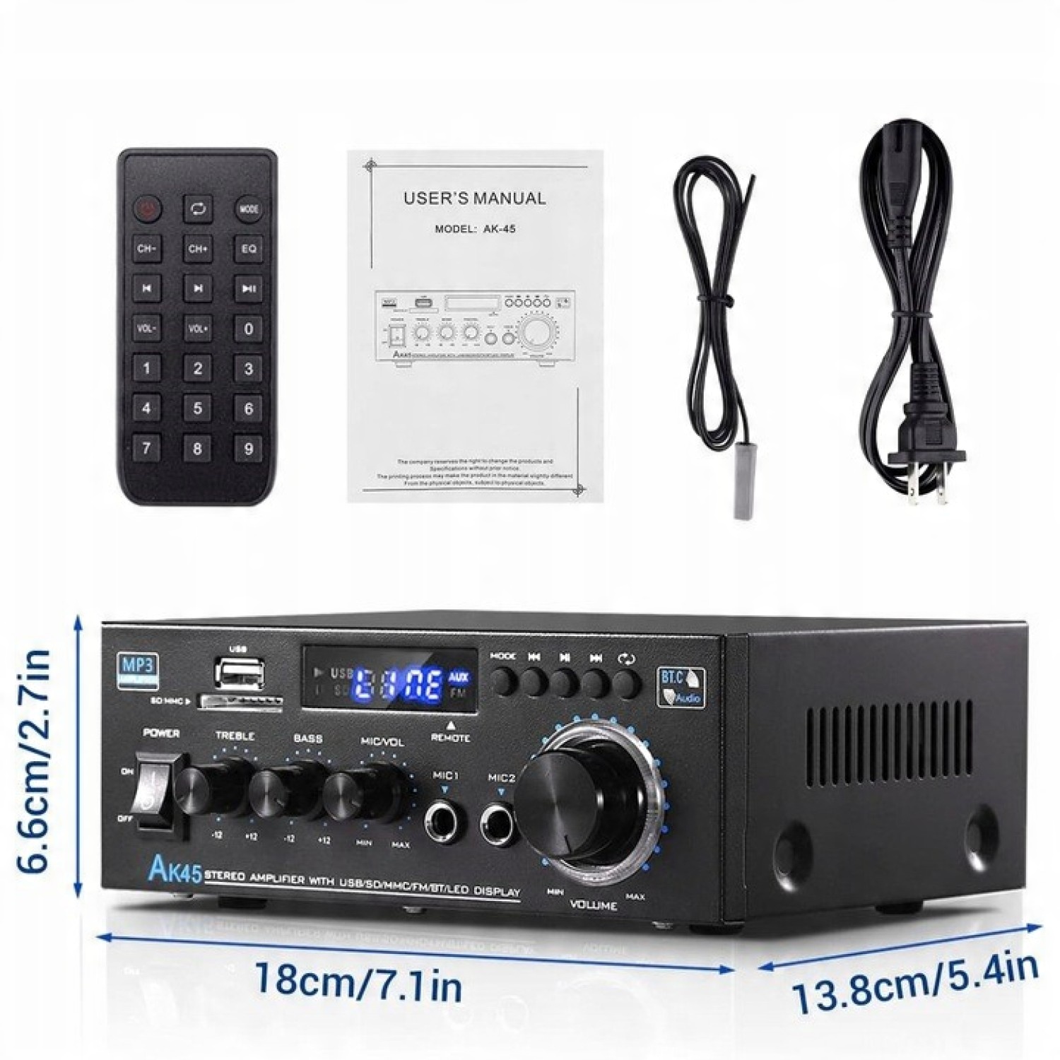 📀AK45 HIFI BLUETOOTH 5.0 USB СТЕРЕОУСИЛИТЕЛЬ С ПУЛЬТОМ ПУЛЬТА ДЛЯ ДОМА И МАШИНЫ📀