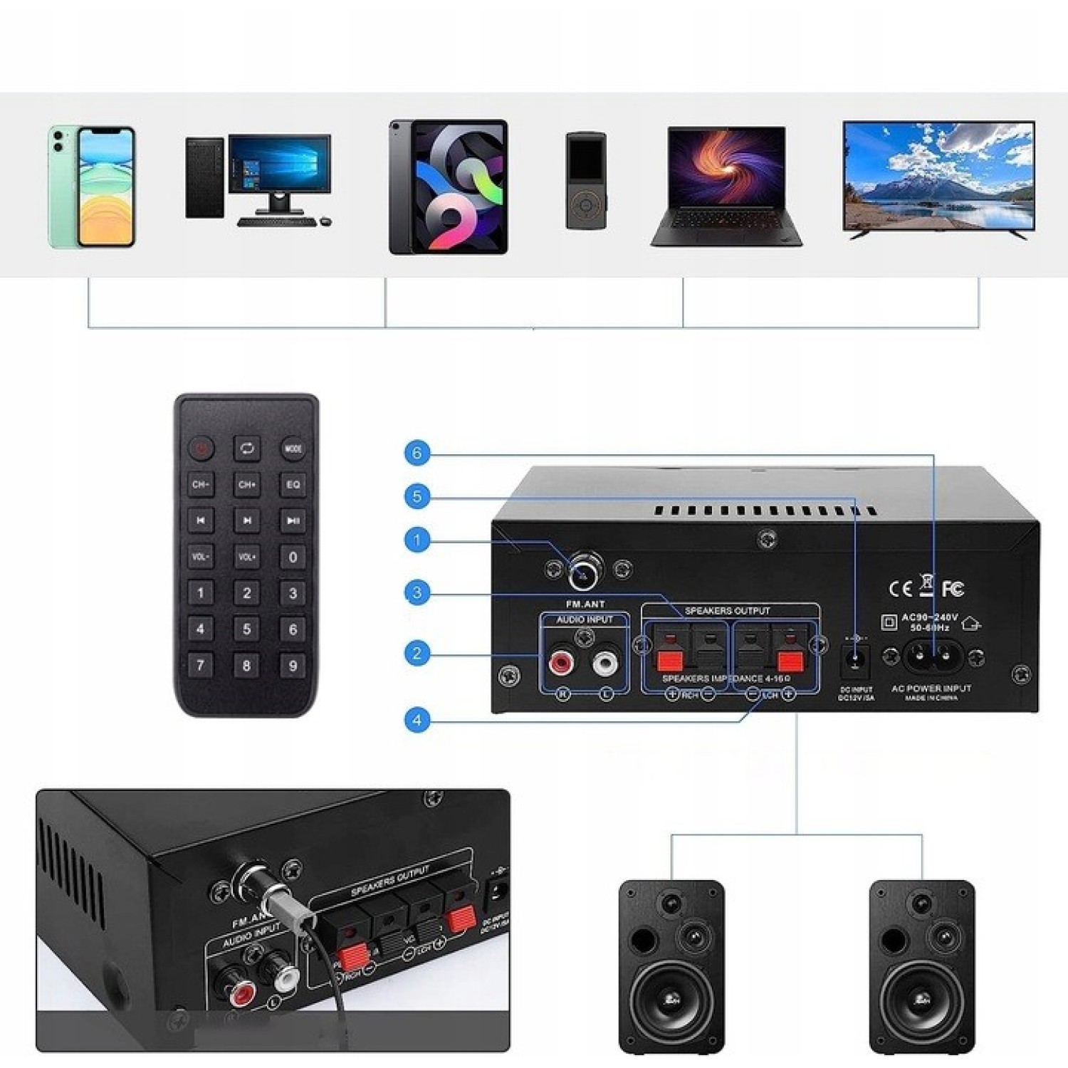 - ⏩С пультом дистанционного управления для удаленного аудио настройки.