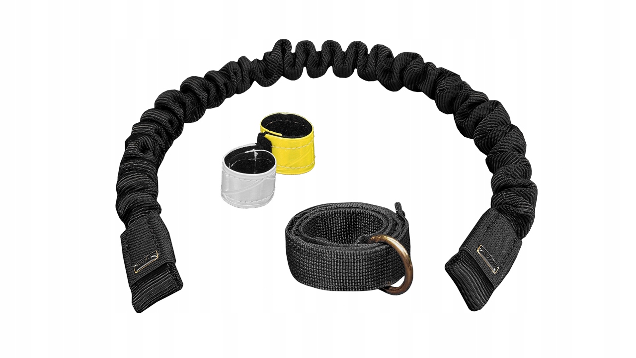 Строение веревки прогрессивное: основной амортизатор работает при сильном натяжении и гасит рывки, а проставка в состоянии покоя укорачивает веревку до длины мин. 1,5 м, а при незначительном напряжении увеличивает расстояние до определенной длины примерно 2,4 м.