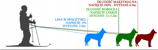 Следует подчеркнуть, что веревка Ski Bike 3.2 является подходящей длина велошлейки при беге собаки в коротких шлейках, закрепленных на холке, потому что они сокращают расстояние на длину спины собаки, но ничто не мешает пристегнуть длинную шлейку к собаке, тянущей велосипед