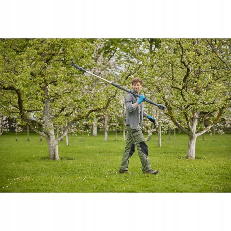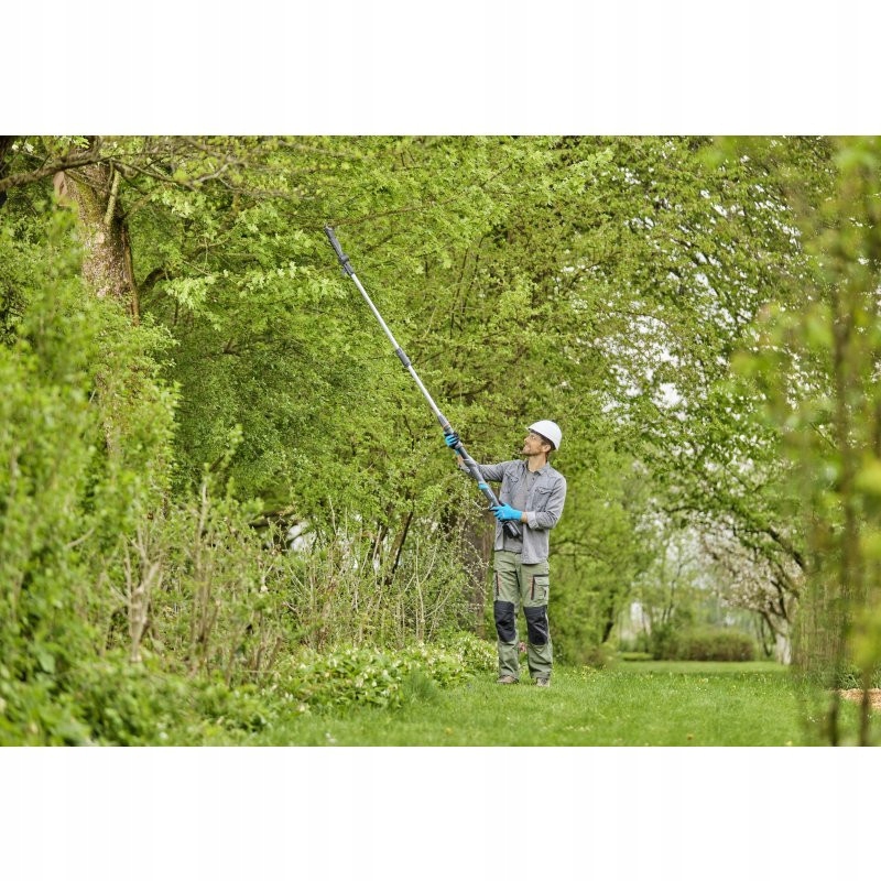 Батарея телескопические телескопические ножницы для высокой высоты ветви P4a с высокой высотой. После скольжения телескопического вала ножницы для ветвей достигают длины 3,6 м, а это означает разрезание ветви на высоте до 5 м. Практическая телескопическая функция позволяет гибко адаптировать инструмент к условиям. Highcut может быть удобно транспортироваться и хранить благодаря двумместному валу. Мощность для всей батареи делает разрез простым, без большого спроса на энергию. Оригинальные лопасти Gardena, произведенные в Германии с закаленной сталью, обеспечивают чистую, гладкую режущую форму свежих ветвей диаметром до 28 мм. Они покрыты нежичным покрытием и точно заземленным, благодаря тому, что режущие ветви не прилипают к лезвию. Стройная, вращающаяся резкая головка позволяет разрезку ветви под углом 60 градусов. Кроме того, голова, установленная под углом, обеспечивает хорошее поле зрения. В случае, если ветвь остается на дереве, ее можно удалить с крючком, расположенным в конце вала. Светодиодный индикатор на эргономической ручке показывает состояние заряда аккумулятора. Заряженной до полной батареи достаточно для 400 порезов. Батарея Gardena Teks Телескопические ножницы для филиалов Highcut 360/18V P4A - набор содержит быстрое зарядное устройство и мощность 18 В для всей батареи. Power For All Alliance является одним из крупнейших стратегических союзников ведущих производителей аккумуляторов. Аккумулятор из этой серии может использоваться во многих различных домашних и садовых устройствах. Таким образом, вы экономите деньги и сохраняете полную гибкость! Чтобы получить 3-летнюю гарантию на телескопические ножницы для батареи для филиалов, достаточно простой онлайн-регистрации. Гарден - страсть ведет нас. Одна батарея для всех садовых задач.
